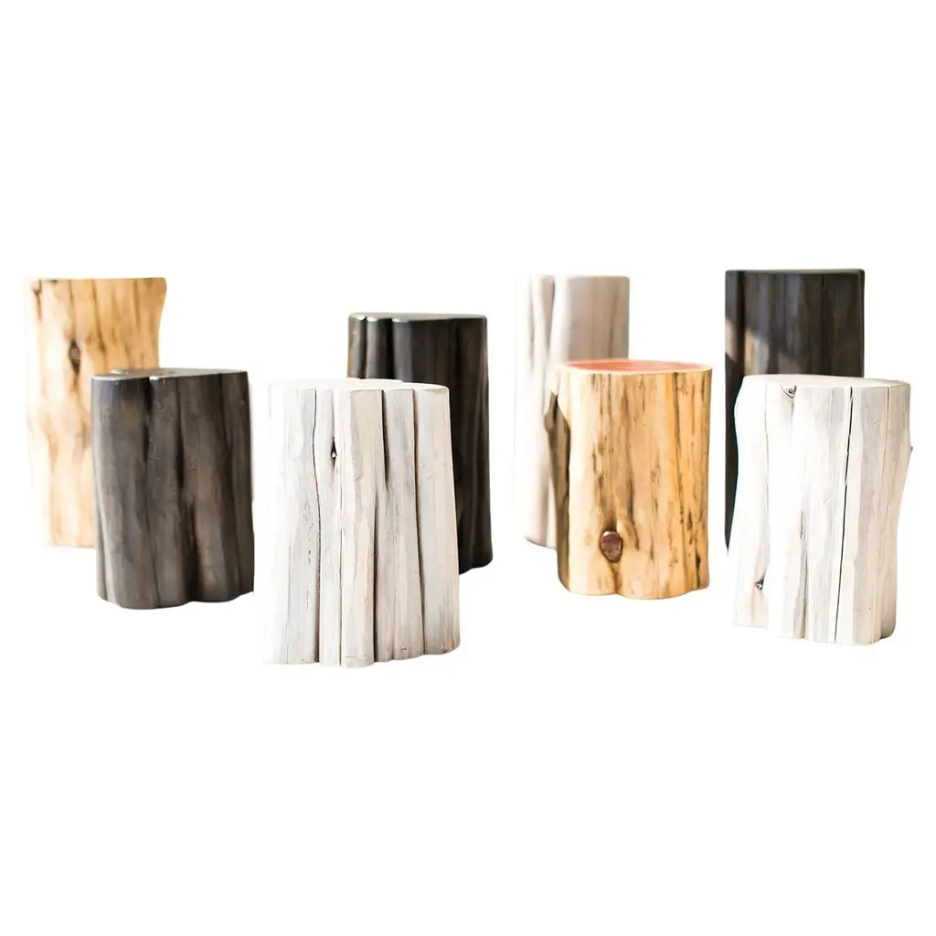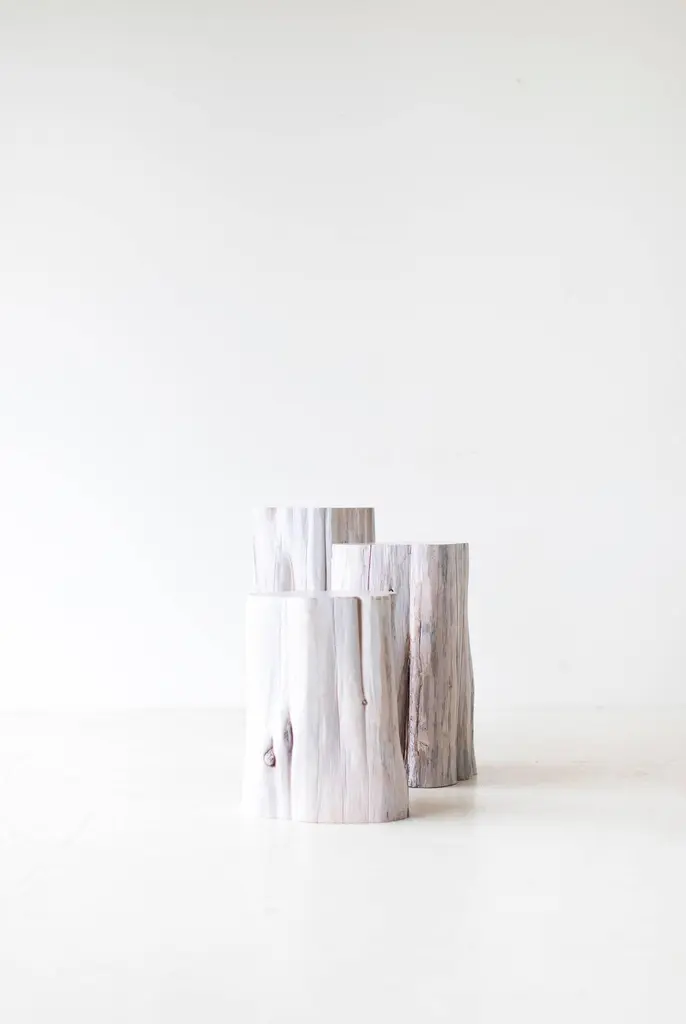 Please scroll down to read IMPORTANT INSTRUCTIONS ABOUT OUR STUMPS before purchase!Why buy our stumps?KILN DRIEDOur stumps all go through a drying process in our kiln, sometimes for up to a month. We are meticulous with bringing each and every log to a specific moisture level. This process helps with major cracking, long-term moisture issues, and bugs.ECO FRIENDLYIn an effort to replenish the trees we use, we plant 50+ trees a year. In addition, we practice salvage logging. Where do we source these? Some of the trees fall naturally. Some have damage from severe wind, lightning, flood, disease, or other natural disturbance so they need to be cut and removed before they fall. Others are fresh cut because people want them off their land. Salvage logging may reduce erosion, reduce intensity of future wildfires, and slow buildup of pest insects.FAMILY OWNEDThese are made from our family to yours. Quality is of utmost importance, and we hand cut, de-bark, sand, and finish every piece with care. COMMERCIAL GRADEThese stumps are meant to be loved and USED. Each is finished with a durable commercial-grade finish. This finish is tough enough for spills, kids, and holds up in hotel and hospitality settings.These tree stump tables are made in the heart of Ohio with locally sourced wood. They can be used for a side table, a stool, or grouped together as a coffee table. Each table is handmade with a solid trunk of red cedar with a white-wash finish. Color can be customized! Our team absolutely loves these - the perfect accessory to any room.IMPORTANT INFORMATION ABOUT OUR STUMPS...1. Please unpack your stump immediately and leave it out of any packaging. These are real pieces of wood and need to breathe!2. For OUTDOOR stumps : Though these are kiln dried and the wood can be used outdoors, sometimes when they arrive in different climates, humidity levels adjust and can affect the finish on top. We see this more often in direct sunlight. We do our very best and continue to make sure there are no issues, but we can not control climate. Solid wood and the elements are unpredictable and we will not be liable. The great thing about these logs is you can always sand them down and refinish.3. Wood naturally moves. These are solid pieces and for that reason, they are prone to cracking. You may get more cracks or bigger cracks in the first few weeks as the wood acclimates to its new home and climate.4. These stump tables have nylon glides (feet) underneath not only to make them easier to move around (they are heavy!), but also so there is nice air flow to the wood. The air flow is most effective on hard flooring. If you put these on rugs or carpeting, we suggest checking on the underside of your stump periodically to prevent any issues.5. We are not liable for any damages to property or people. If you have any concerns or questions you need to discuss, please write or call. We are always available, honest, and transparent about our products. Thank you and I hope you love these!SpecsPeriod/model: New; modern rusticSpecs: Cedar, whitewash Customizable: Yes! It's what we do :)This listing is for our "normal" diameter stumps, the smallest diameter stumps we offer. We have medium and large sizes as well!Dimensions:H 15", 18", 21"W 11" (give or take)Note: These are REAL tree stumps. Natural movement and cracking is normal. These are all slightly different in character, variations of size, etc!