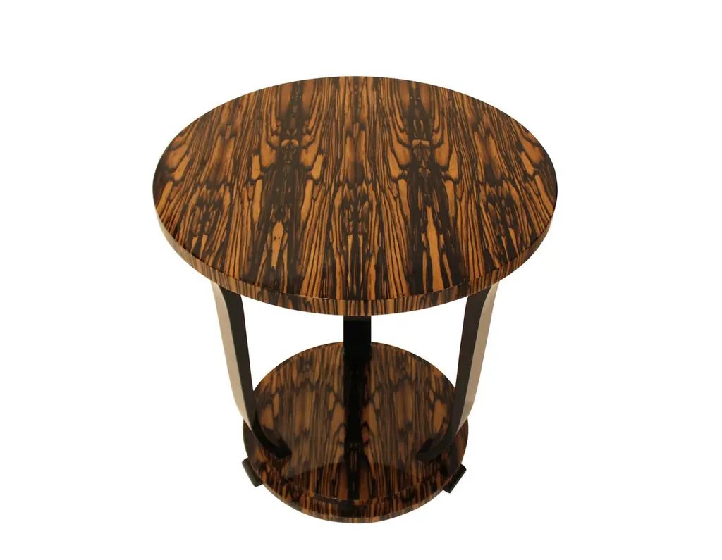Modernist Series Round Side Table In White Ebony Macassar Veneer