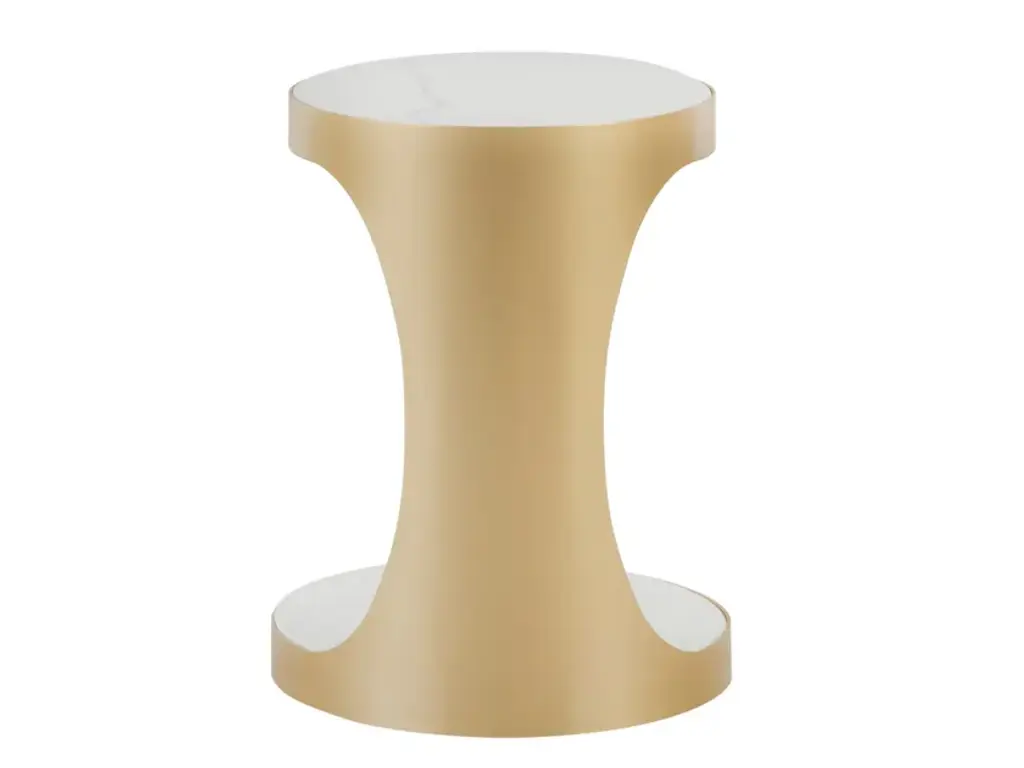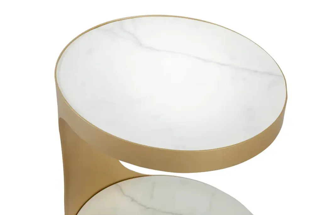 Modì is a round side table with a sinuous structure, in painted steel with an elegant porcelain stoneware top.Finishes:Porcelain stoneware top: onyx grey porcelain stoneware, statuario altissimo porcelain stoneware, portoro porcelain stoneware, onyx amber porcelain stoneware, emperador porcelain stoneware.Metal structure: matt white, carbon grey matt stone bronze, matt gold.