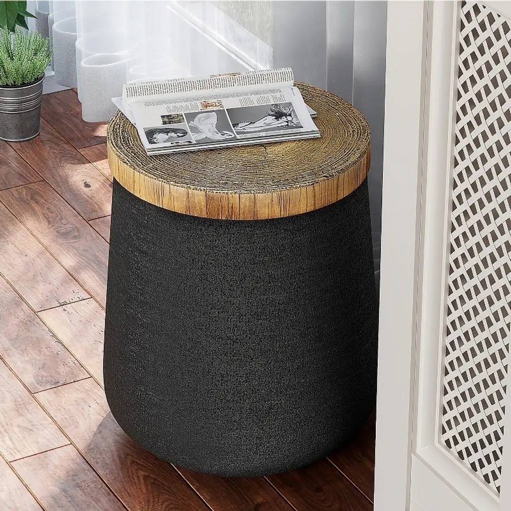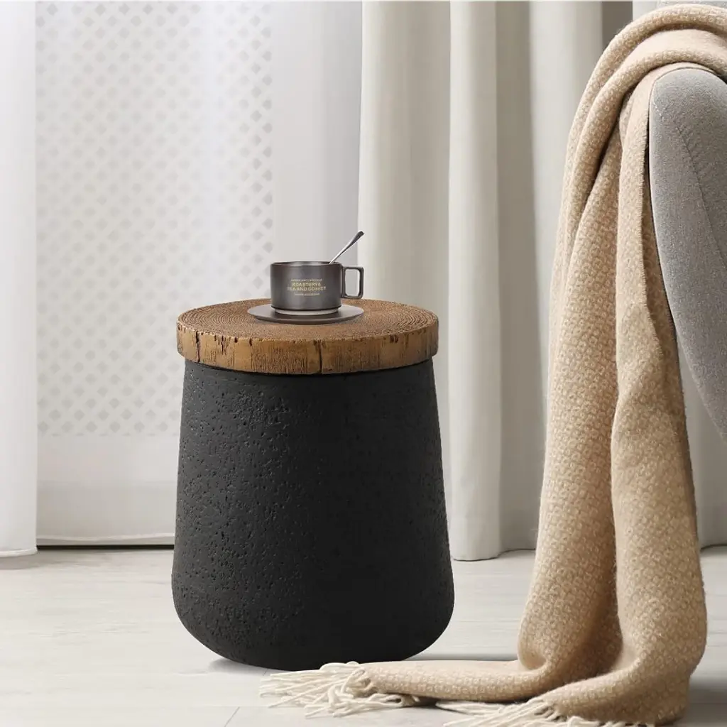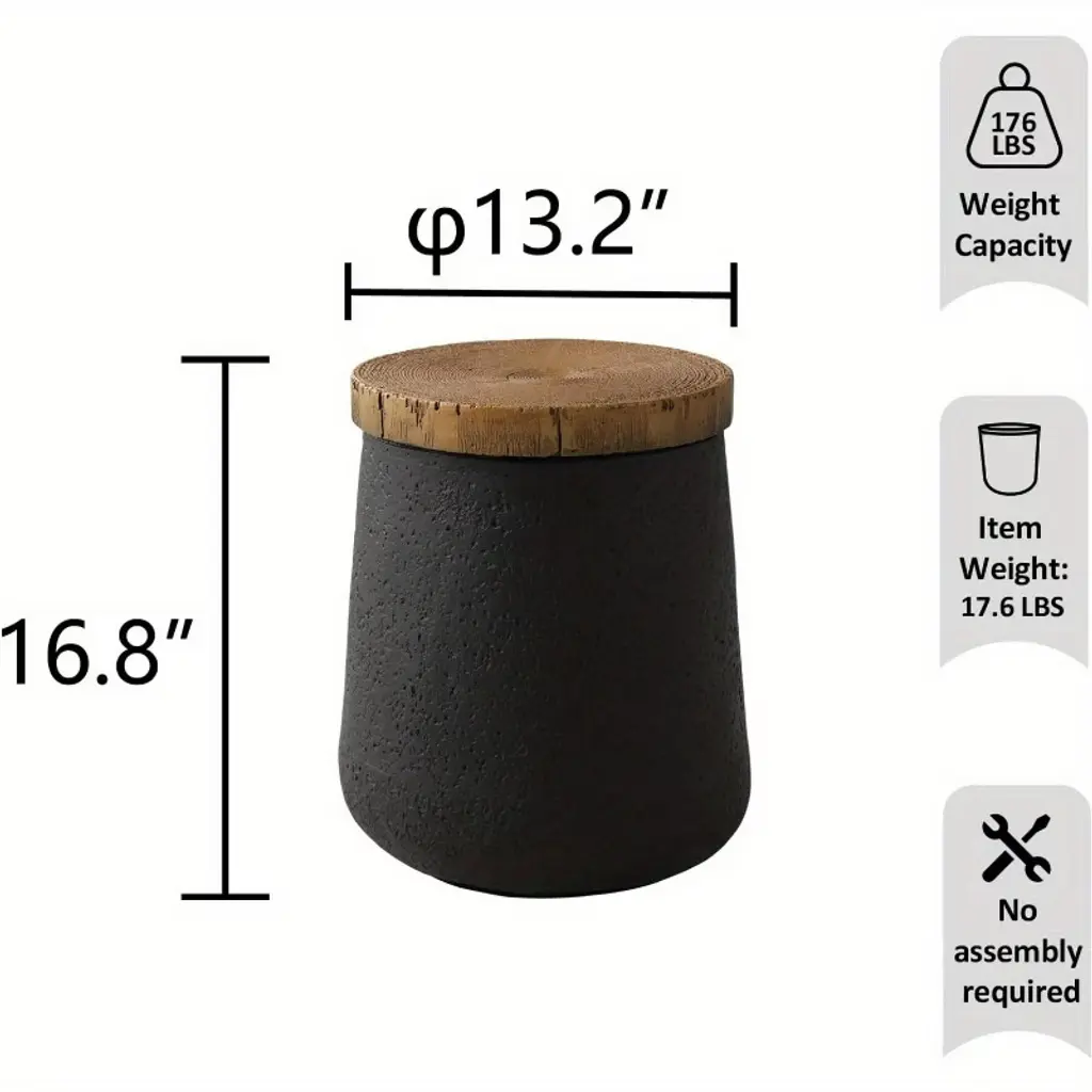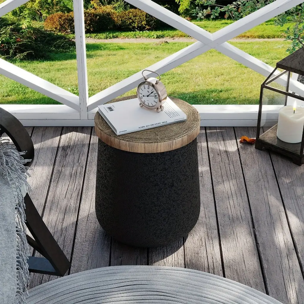 Add rustic elegance to your home, choose a cylindrical side table. Made of high-quality magnesium oxide material, our outdoor side table has a durable structure yet lightweight, making it easy to carry anywhere you want.This outdoor coffee table will become an attractive decoration for indoor and outdoor spas, and give a personalized atmosphere with a vintage style Wide Application: As a side table for placing small plants, books or magazines. Add a rustic touch to your home Color: Black Weight Capacity: 220 lbs Product Dimensions: 13.2" x 13.2" x 16.8" Product Weight: 11 lbs Material: Magnesium Oxide