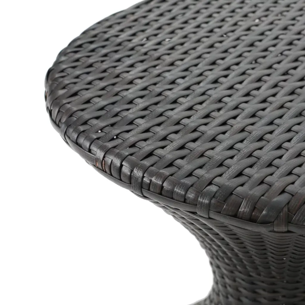 This attractive, hourglass-shaped side Table ensures that you will always have a place to set down everything you need for an Afternoon spent enjoying the outdoors. Made from the highest-quality Wicker over a durable iron frame, It balances durability with aesthetics. A perfect addition to your garden, patio, or backyardIncludes: one (1) side TableDimensions: 16.00"D x 16.00"W x 18.00"HMaterial: Polyethylene wicker , wicker finish: Multi-brownFrame material: iron , no assembly required