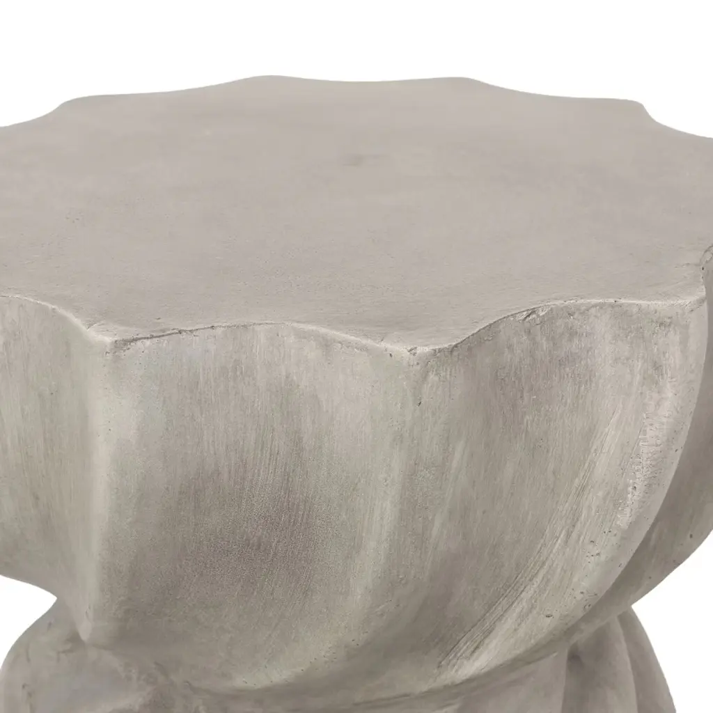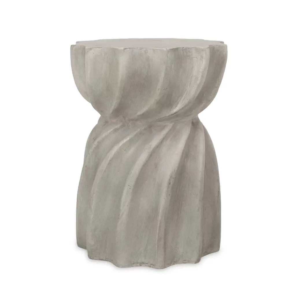 Add a bold touch to your outdoor space that will tie your decor together with a refined twist.With a smooth lightweight concrete structure and modern design, our side table offers high durability and stunning looks for your backyard or patio.Perfect as an end table next to your chat set or sectional, this piece will hold any snacks or chilled drinks in sophisticated grace.Finished with a sunburst tabletop and hourglass shape, this table is a seamless addition to any space.