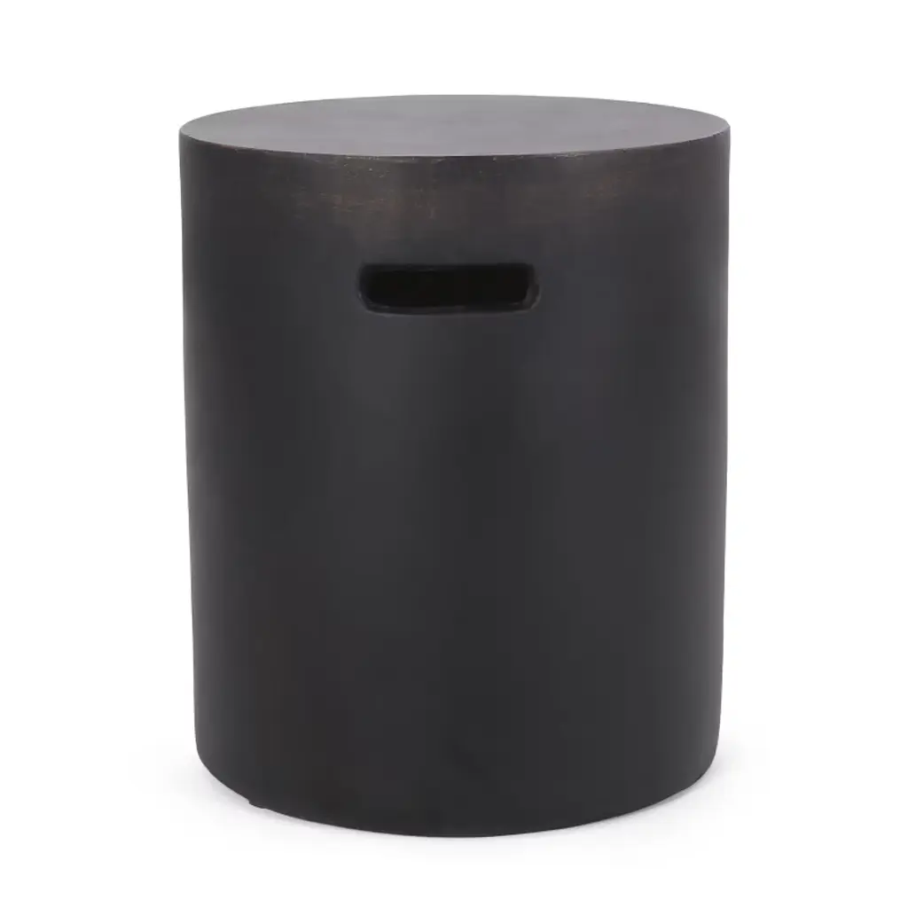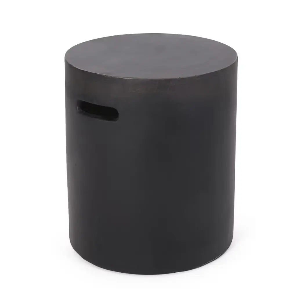 A TOUCH OF PERSONALITY: Bring your outdoor space to life with our end table that features a simple cylindrical structure and a cutout handle. With charming aesthetics, this side table will be sure to enliven any home.MODERN DESIGN: Featuring an understated design, this side table offers the look, feel, and design of a chic modern piece. With a minimalistic yet refined structure, this table brings out a simplistic style that emphasizes functionality.LIGHTWEIGHT CONCRETE: This side table is constructed with lightweight concrete for a smooth look. This provides a highly durable structure that can hold a substantial amount of weight.DIMENSIONS: Choose an accessory that is the perfect size for you and your furniture. This end table is 15.50" W x 15.50" D x 18.50" H. You will love how much your space can transform with the simple addition of this charming table.NO ASSEMBLY: This side table comes ready to use straight out of the box. No assembly is required.