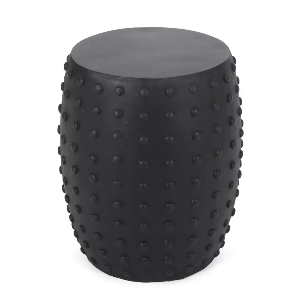 A TOUCH OF PERSONALITY: Bring your outdoor space to life with our end table that features a delightful barrel structure and outstanding studded design. With charming aesthetics, this side table will be sure to enliven any homeMODERN DESIGN: Featuring an understated design, this side table offers the look, feel, and design of a unique modern piece. With a minimalistic yet refined structure, this table brings out a simplistic style that emphasizes functionality.LIGHTWEIGHT CONCRETE: This side table is constructed with lightweight concrete for a smooth look. This provides a highly durable structure that can hold a substantial amount of weight.DIMENSIONS: Choose an accessory that is the perfect size for you and your furniture. This accent table is 15.50" W x 15.50" D x 18.00" H. You will love how much your space can transform with the simple addition of this charming table.NO ASSEMBLY: This side table comes ready to use straight out of the box. No assembly is required.