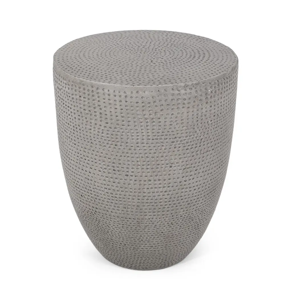 A TOUCH OF PERSONALITY: Bring your outdoor space to life with our end table that features a rounded tapered cylindrical structure and textured surface. With charming aesthetics, this side table will be sure to enliven any home.MODERN DESIGN: Featuring an understated design this side table offers the look, feel, and design of a chic modern piece. With a minimalistic yet refined structure, this table brings out a simplistic style that emphasizes functionality.LIGHTWEIGHT CONCRETE: This side table is constructed with lightweight concrete for a smooth look. This provides a highly durable structure that can hold a substantial amount of weight.DIMENSIONS: Choose an accessory that is the perfect size for you and your furniture. This accent table is 14.25"W x 14.25"D x 17.50"H. You will love how much your space can transform with the simple addition of this charming table.NO ASSEMBLY: This side table comes ready to use straight out of the box. No assembly is required.