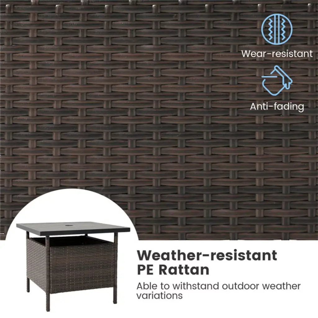Moepisy Patio Square Wicker Side Table With Umbrella Hole For Yard Garden Poolside