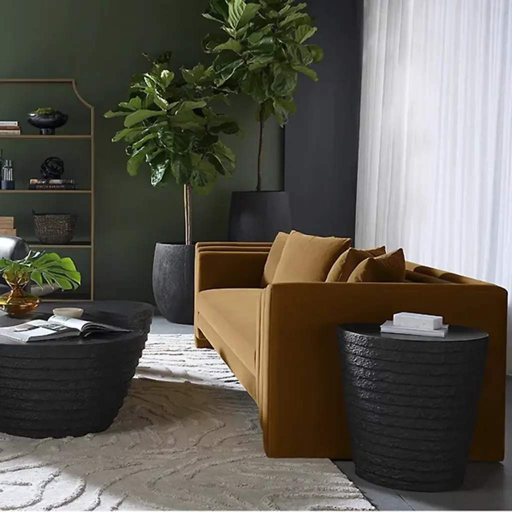 The Mojave End Table from Sunpan rises elegantly with a slender profile, its graceful kidney shape occupying minimal space while making a distinct design statement. This compact yet statuesque piece features a smooth surface that plays against the rhythmic ridges of its base, each element enhanced by a sophisticated gypsum plaster finish. Built from glass fiber-reinforced concrete and sealed for protection, this refined accent piece presents unique variations in its texture and tone, celebrating the subtle artistry of individually cast concrete while offering enduring durability.