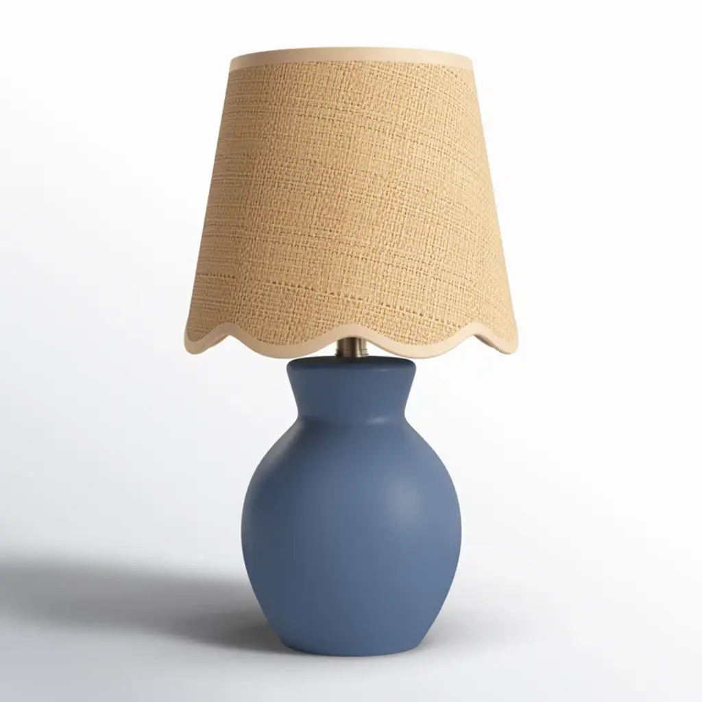 Warm up your living room or bedroom with this charming accent lamp that casts a welcoming glow. Its base is crafted ceramic in a classic bell shape, complemented with just the right shade of multiple colors. The design features a scalloped shade with a ceramic base. A rocker switch on the inline cord makes it easy to flip a switch to illuminate your reading nook. This petite table lamp is the perfect size for a nightstand or sideboard.