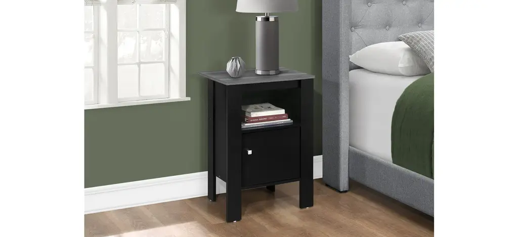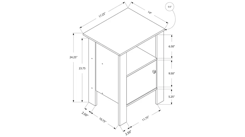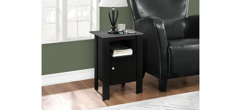 Bring an industrial and contemporary design together with the Monarch Specialties Side Table. In a compact format, it has ample surface space for a few decorations, books or a laptop/tablet thanks to an open shelf and closed cabinet with a beautiful square knob. Make your small home, apartment or condo feel nice and homey and draw some attention to your stylish new side table.