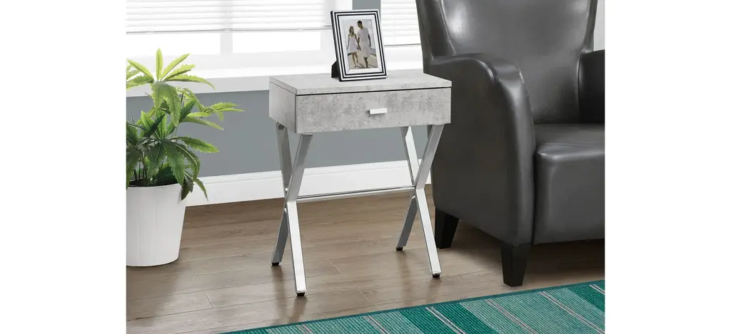 For a brilliant home upgrade, the Monarch Specialties X Accent Table does the trick (and more!). Supported by a metal base, the end table is made for anything from snacks and drinks to your laptop, tablet and even decorative accents that complement the rest of your decor. Bringing a modern touch to your small home, condo or apartment, this table slides nicely next to the couch or bed. Study session? Favorite movie? Quiet reading time? This side table handles all of the above and some extra storage thanks to a convenient legal/letter-sized storage drawer.