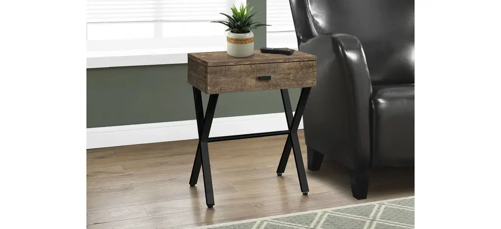 For a brilliant home upgrade, the Monarch Specialties X Accent Table does the trick (and more!). Supported by a metal base, the end table is made for anything from snacks and drinks to your laptop, tablet and even decorative accents that complement the rest of your decor. Bringing a modern touch to your small home, condo or apartment, this table slides nicely next to the couch or bed. Study session? Favorite movie? Quiet reading time? This side table handles all of the above and some extra storage thanks to a convenient legal/letter-sized storage drawer.