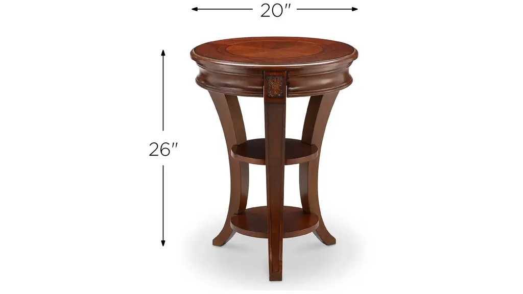 Simple elegance and grace are the defining elements of Monarch Winslet Round Accent Table. Executed in rich Cherry and Walnut veneers and hardwood solids, this regency inspired collection features inwardly curved saber legs that graciously splay outward and support an added shelf for lower storage, atop convenient casters.