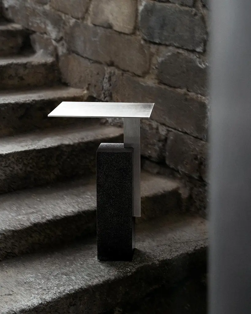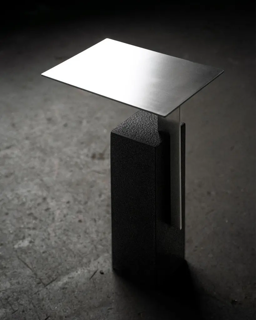 Mono Side Table Combining Basalt And Metal Modern Look, Stainless