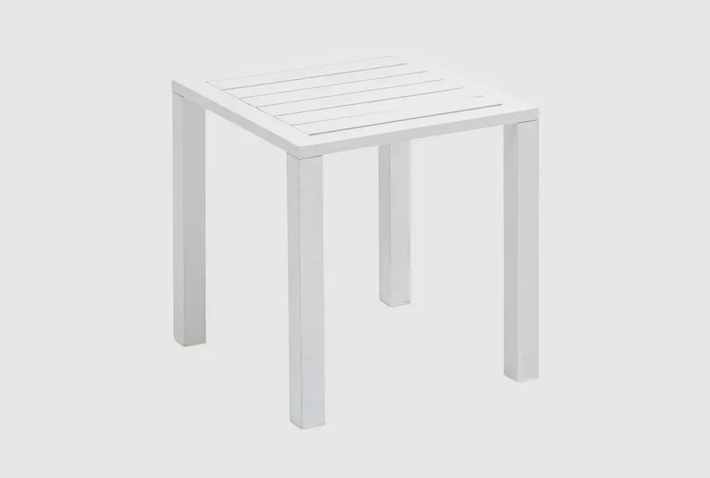 A sleek bronze finish calls attention to the slatted top and crisp, clean lines on this outdoor aluminum side table.