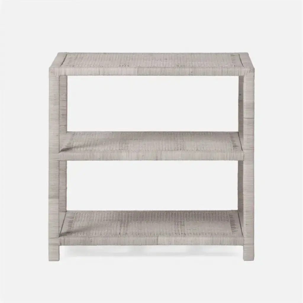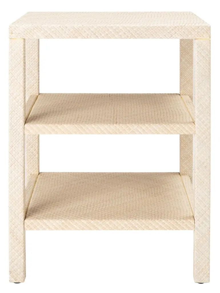 Full of vintage-inspired style, this side table effortlessly transforms any room with bold elegance. The frame is crafted from engineered wood with a natural beige woven raffia leaf overlay with a yellow undertone for just the right amount of texture and boho charm. An open lower shelf provides a spot for books and magazines, while the top is an ideal place to keep an accent lamp or coasters. Measuring 20" square, this end table is a great way to round out your living room seating group.