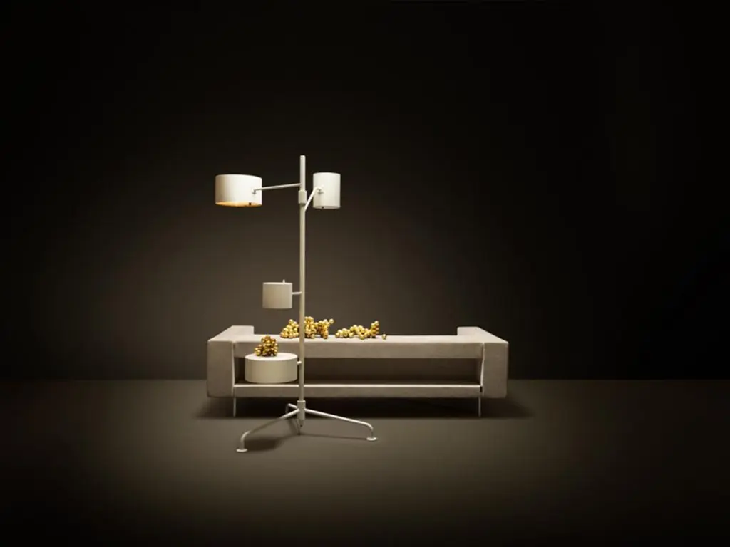 The floor lamp’s lean aluminium body is really multifunctional with its towering two meters and all-embracing light beams, the tallest shade projecting light towards the ceiling while the wider shade acts as the perfect reading lamp. And what about the two other shades? The lowest is no shade … but a surprisingly useful side table. Perfect to support a laptop or your favorite drink, it’s always in the spotlight!Additional information:Materials: AluminiumFinish: Ruby RedEnergy label: Energy Label BLight source type: LEDLight source included: YesLight output: 1200 lmNumber of light sources: 3Input voltage: 90-130VFrequency: 50/60Max power consumption: 40WColour temperature: 2700 KDimmable: YesLamp holder: LED (Solid State)Plug type: US plug (Type A)Switch: In line on/off switchCable colour: BlackCable length: 300cm 118.1"Lifetime: 50000 hoursLight direction: All directionsDimensions: 130 W x 90 D x 200 H cmAvailable in other finish option: Oyster white, Curry, Yellow orange, Vermilion, Pure orange, Beige red, Light pink, Sapphire blue, Grey blue, Pastel blue, Grass green, Pale green, Silver grey, Iron grey, Light grey, Silk grey, Ochre brown, Sepia brown, Jet black, Traffic white, Traffic yellow, Mahogany brown, Golden yellow, Pure white.
