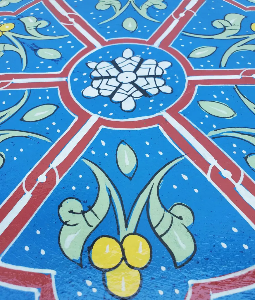 Moroccan Hexagonal Wooden Side Table, Musharabi Blue 2