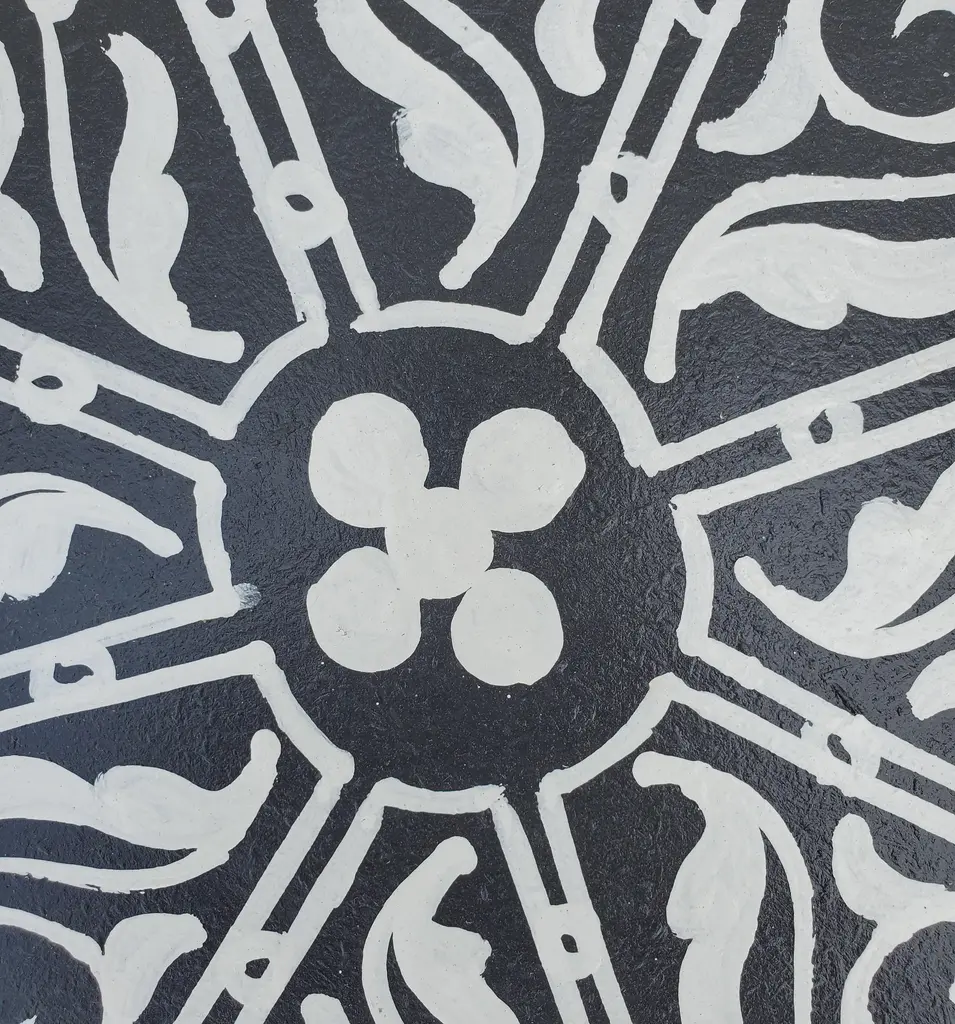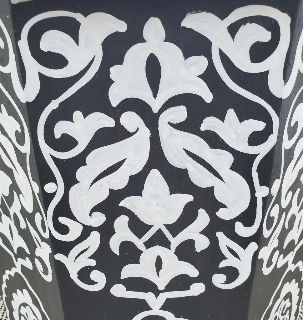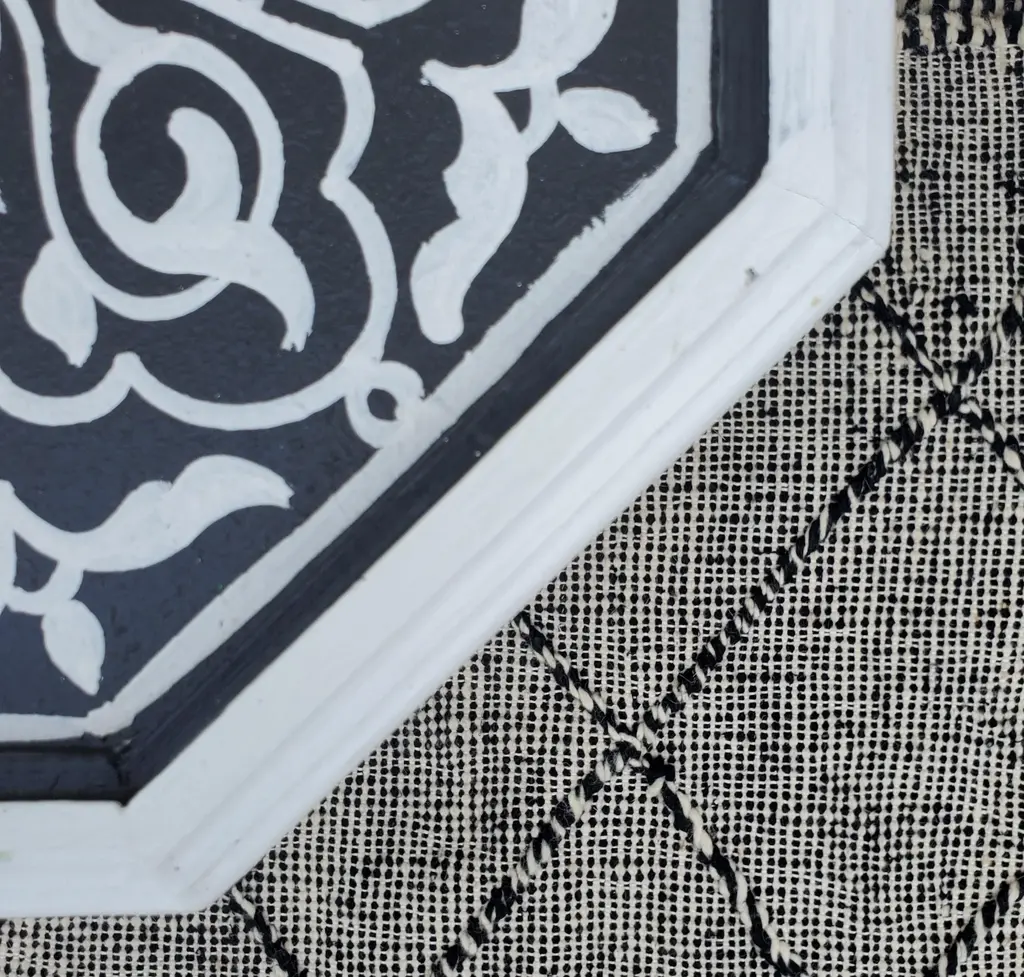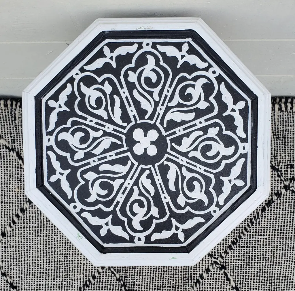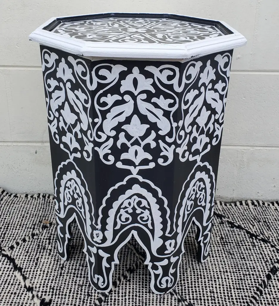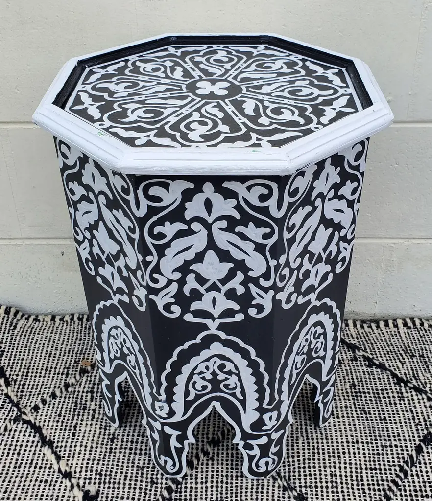 Moroccan Octagonal Hand Painted Wooden Side Table In Black And White
