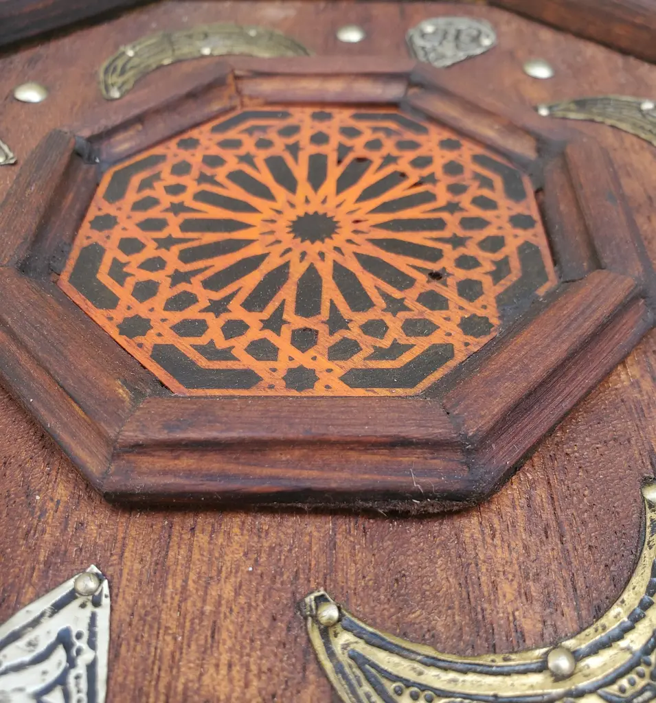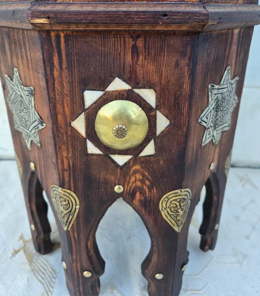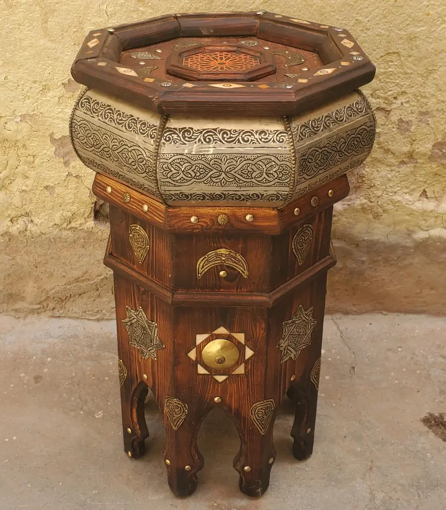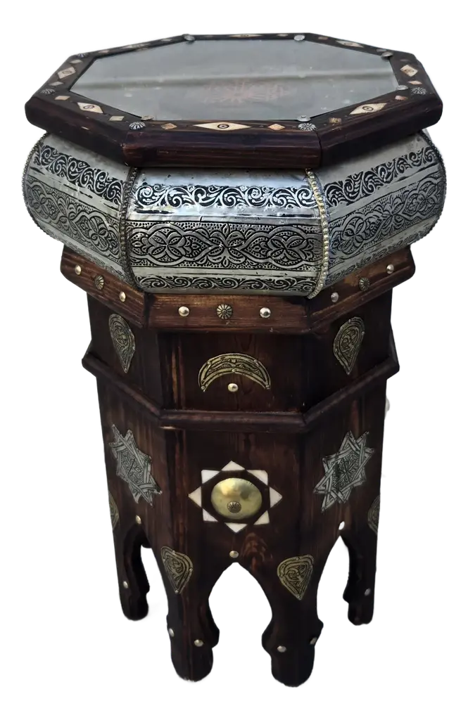 Moroccan Octagonal Traditional Metal Inlaid And Cedar Wood Side Table