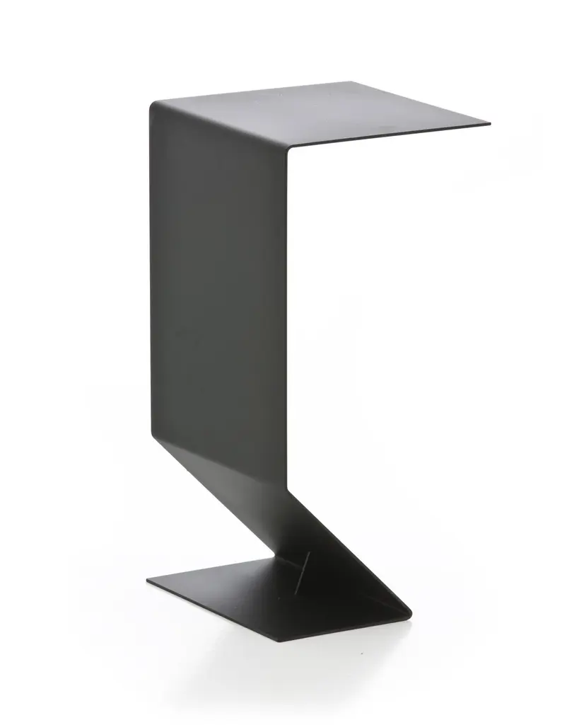 The cantilevered table is designed as a highly flexible and universal pull up surface to accompany low lounge seating.The table’s minimal design is an exercise in pure function dictating form. The wrapping articulation of its design, communicates a soft dialog between the user and itself by establishing a new relationship between table and interior furnishings.The designer, Marc Thorpe, states,” it is as little design possible that makes this table successful, that the table is less about itself and more about its relationships it creates.”Structure is steel with powder coat finish.DIMENSIONS:W. 27 x D. 25 x H. 51 cmAvailable in different options, please inquire with us.