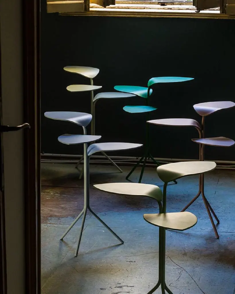 The Morning Glory takes its name from the flowering vine. The vines grow and wrap around each other reinforcing the structure of the plant. The petals of the vine spread out become a canopy of surfaces to retain water. This organic architecture lends itself to the table designed for Moroso. Designed to be arranged in clusters, the three stems of the table connect at the base mimicking the organic structure of the vine itself. The petals of the table overlap each other producing a multi layered system of surface and color.Available in different options:Finish:• CARAMEL• LEAF GREEN• LIME• LICHEN• SAGEDIMENSIONS:W. 49 x D. 49 x H. 61 cm