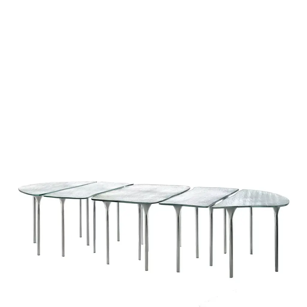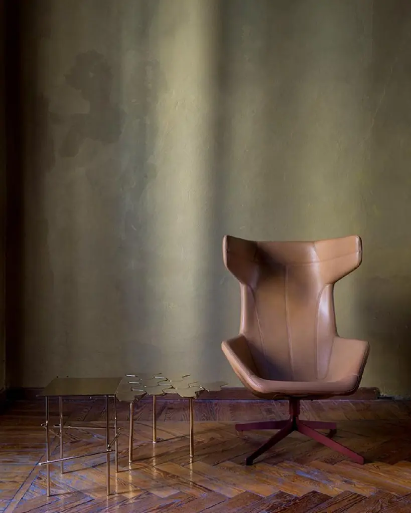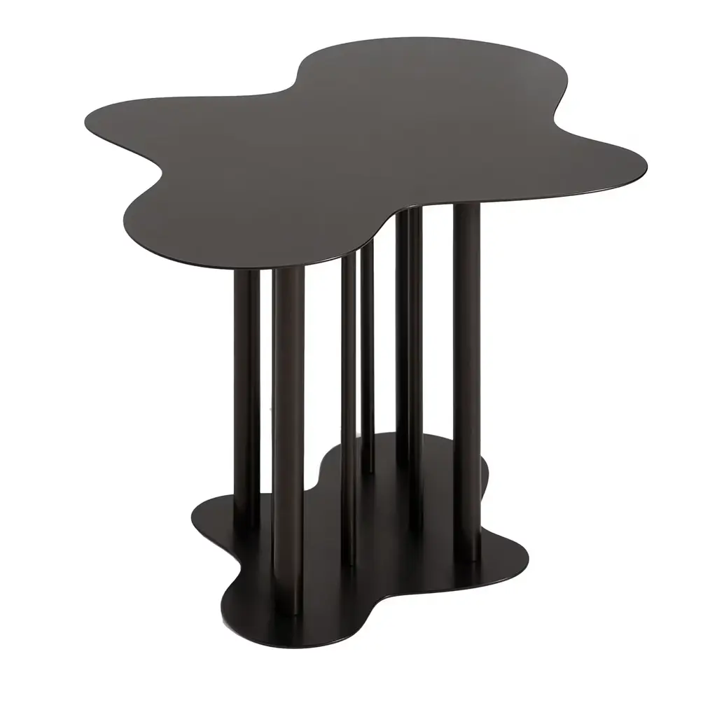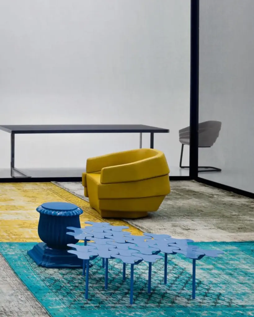 It reflects a study of the passage from two to three dimensions based on observing the tanning of a quadruped’s hide. This taut skin evokes memories of the animal it once was. The same skin, pleated, gives us the three-dimensionality of a chair or armchair. The structure is a hexagonal network inspired by molecular geometry or a snowflake. The natural form of a skin for the chair’s upholstery. The rigorous geometry of Nature for its structure. Like the Inuit peoples who wear animal skins for protection, Nanook’s technical-fabric upholstery has tribal echoes. The pleated, three-dimensional skin is transformed into a contemporary object through the use of digital printing for the upholstery, and moulded synthetic material for the structure. Nanook seating – whose name derives from the protagonist of the first nature documentary in film history – preserves tribal memories while looking to the future and to technology with the same optimism with which Nanook observed his icy environment.”Top is sheet steel, legs are tubular steel with powder coat finish or polished gold chrome finish.Available in different options:Finish:• BLACK• WHITE CHALK• STARDUST• ROSE GOLDDIMENSIONS:W. 60 x D. 63 x H. 34 cm