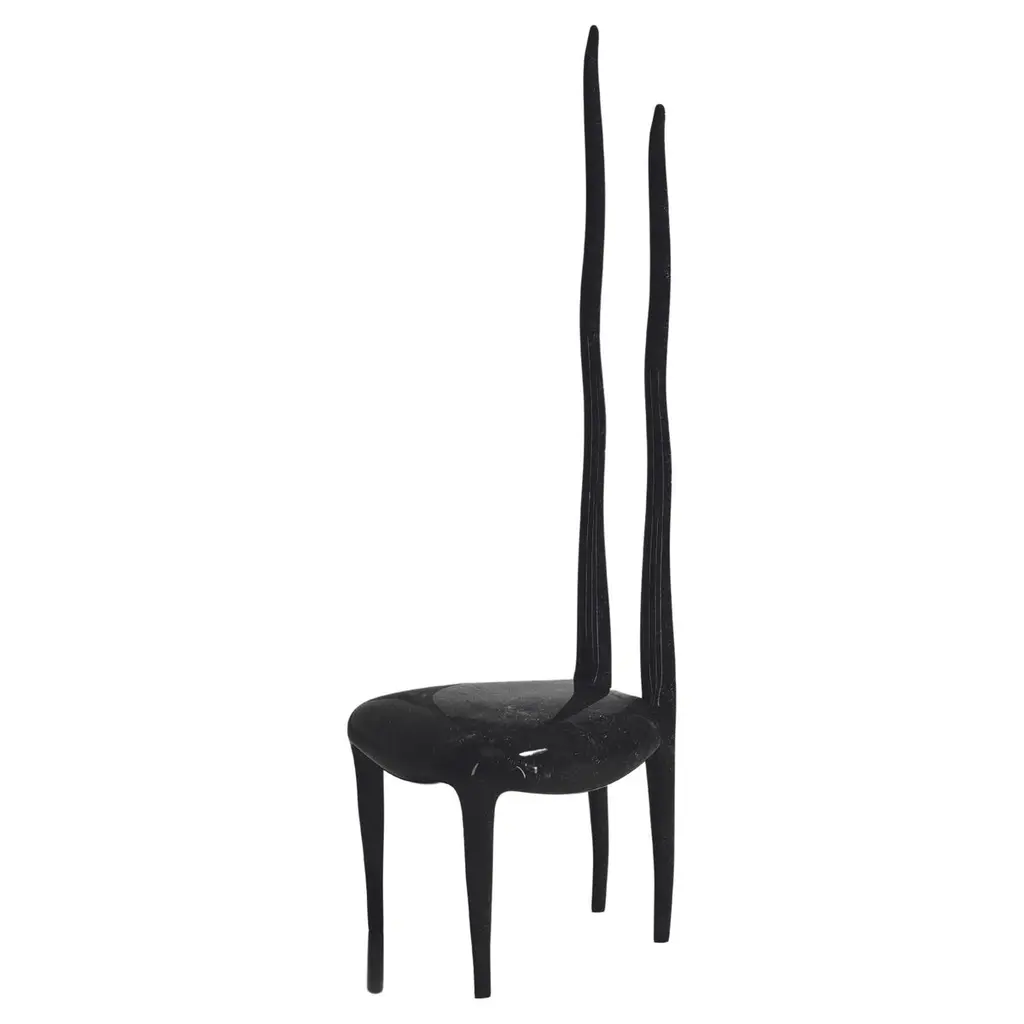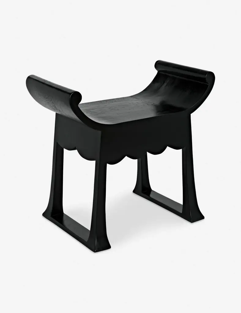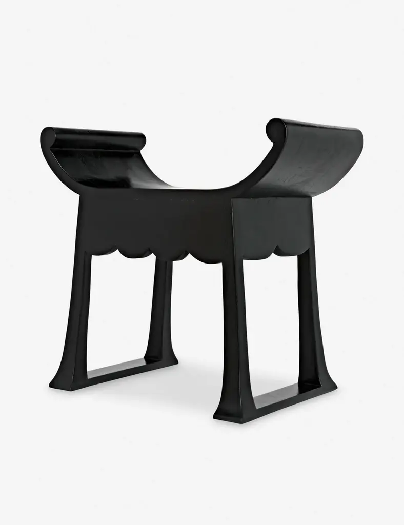 An ornate silhouette is balanced by a sleek black finish in this unique side table. The scrolling top, scalloped skirt, and flanged legs add to this end table's signature appeal while reflecting an elevated tone for a eclectic space or transitional look.