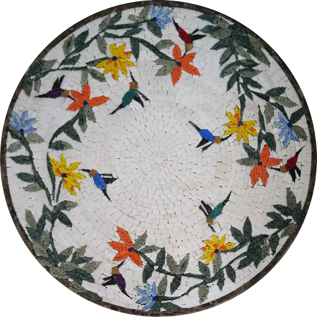 Mosaic Medallion - Colorful Hummingbirds | Luxury Handcrafted Art - 122cm X 122cm (48" X 48")