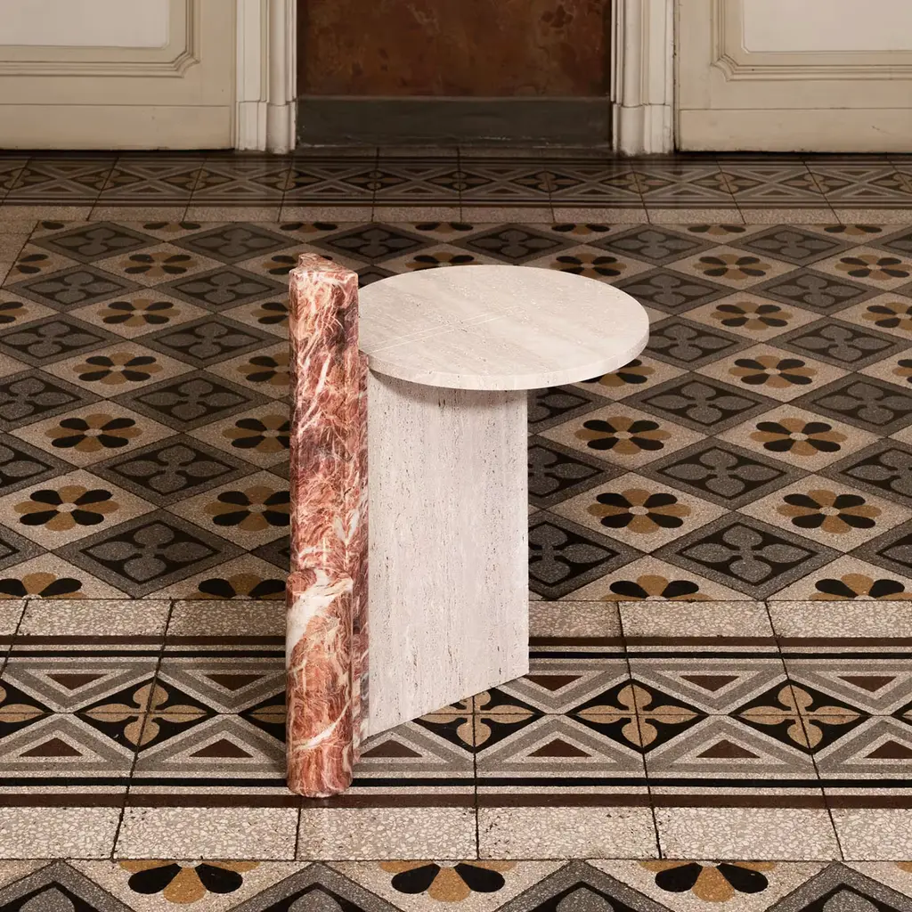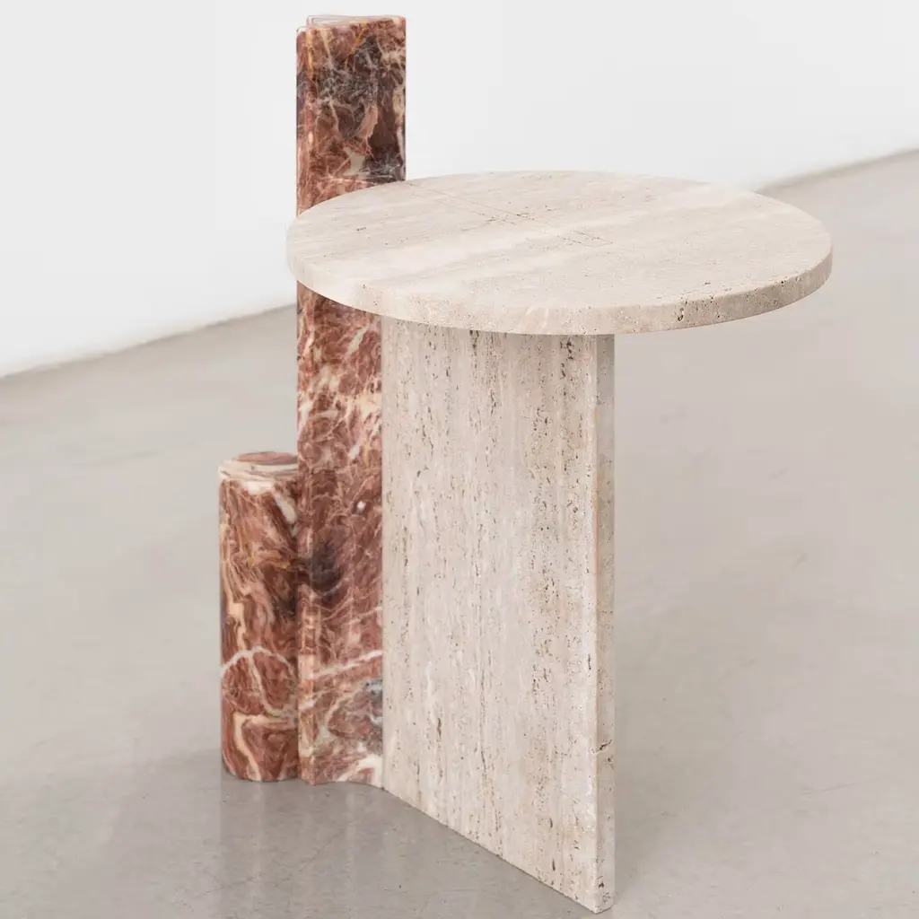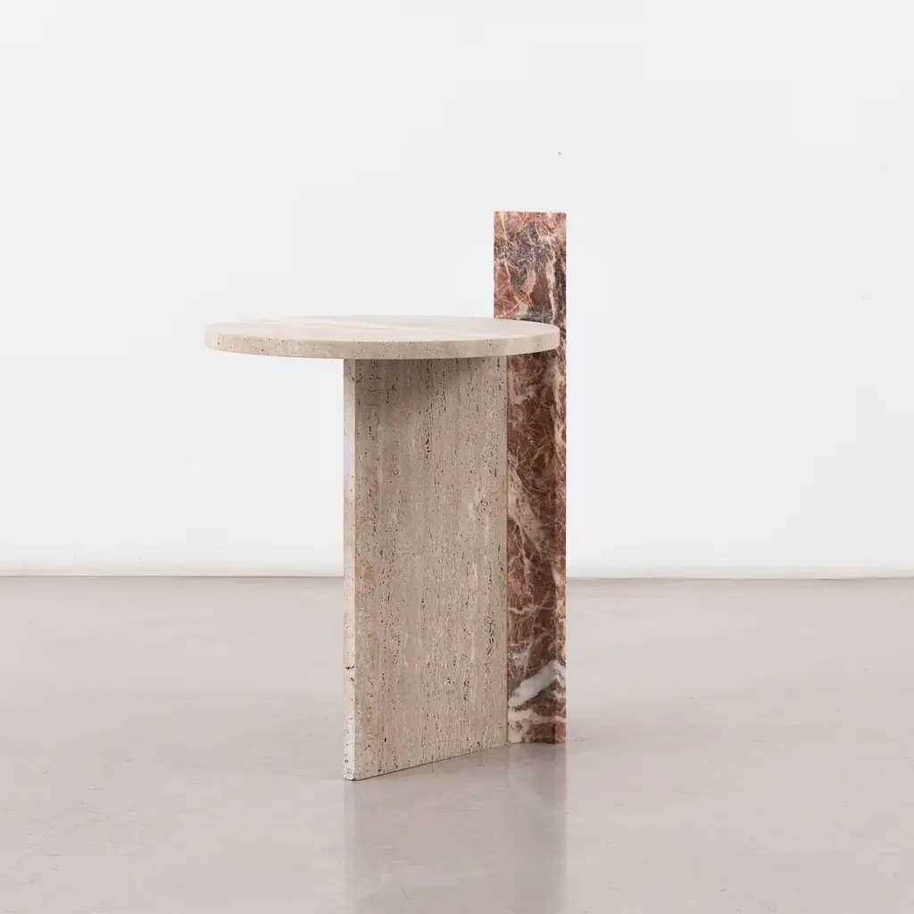 Mostro Iii Rosa Peralba Marble And Travertine Side Table