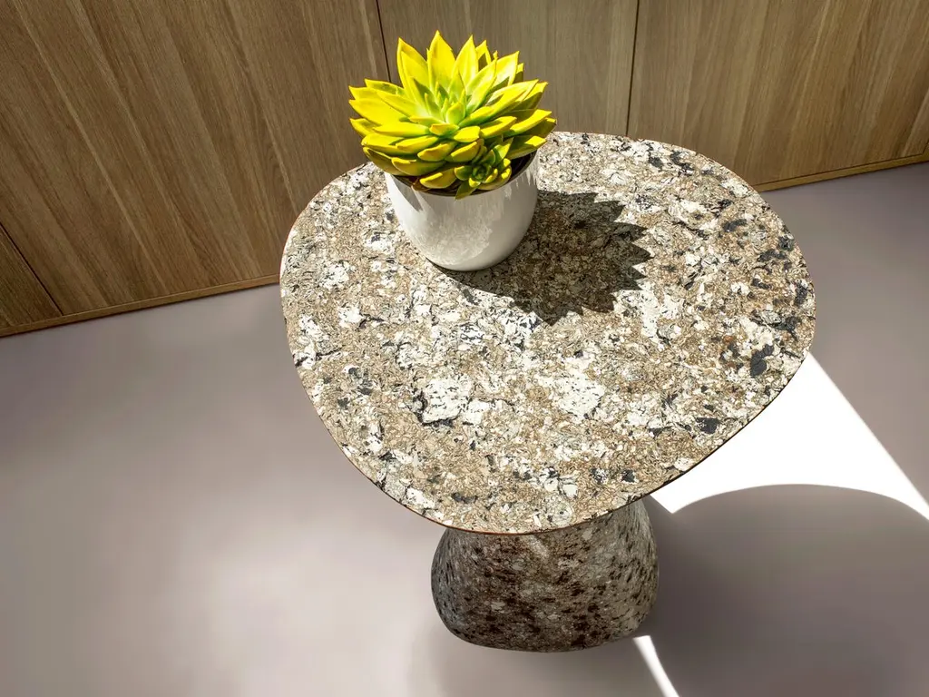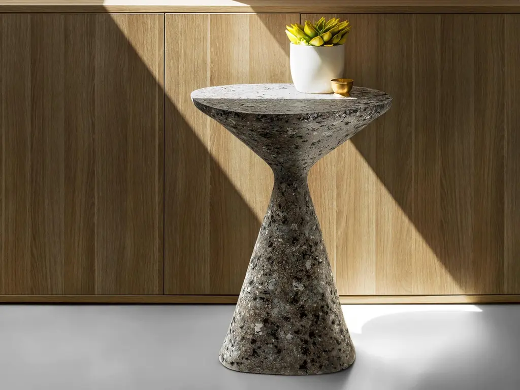 Mottled Black Side Table by Donatas ZukauskasDimensions: Ø 46 x H 61 cm.Materials: Concrete, wood, recycled paper, glue, and paint.Donatas ŽukauskasHello, my name is Donatas Žukauskas, I am an interior designer. I have graduated Vilnius Academy of Fine Arts and for more then 15 years I have been designing the interiors. Since I can remember myself I have always been interested in the art and this is the reason I have always tried to decorate interiors with art works. I strongly believe, a perfect interior cannot be without art!This concept used to get difficulties because could not find necessary objects for interior like stylish tables, lamps, lanterns, vases, sculptures. This gave an idea to create some arts by myself. Exceptional hand-made details for the home, cafe, and hotel spaces provide expressiveness and manners.My works are exposed in different countries of the world. Recently 50 lanterns went to Sheraton’s restaurant at Doha, Qatar.
