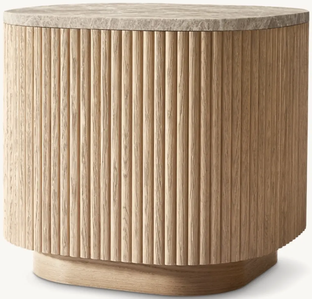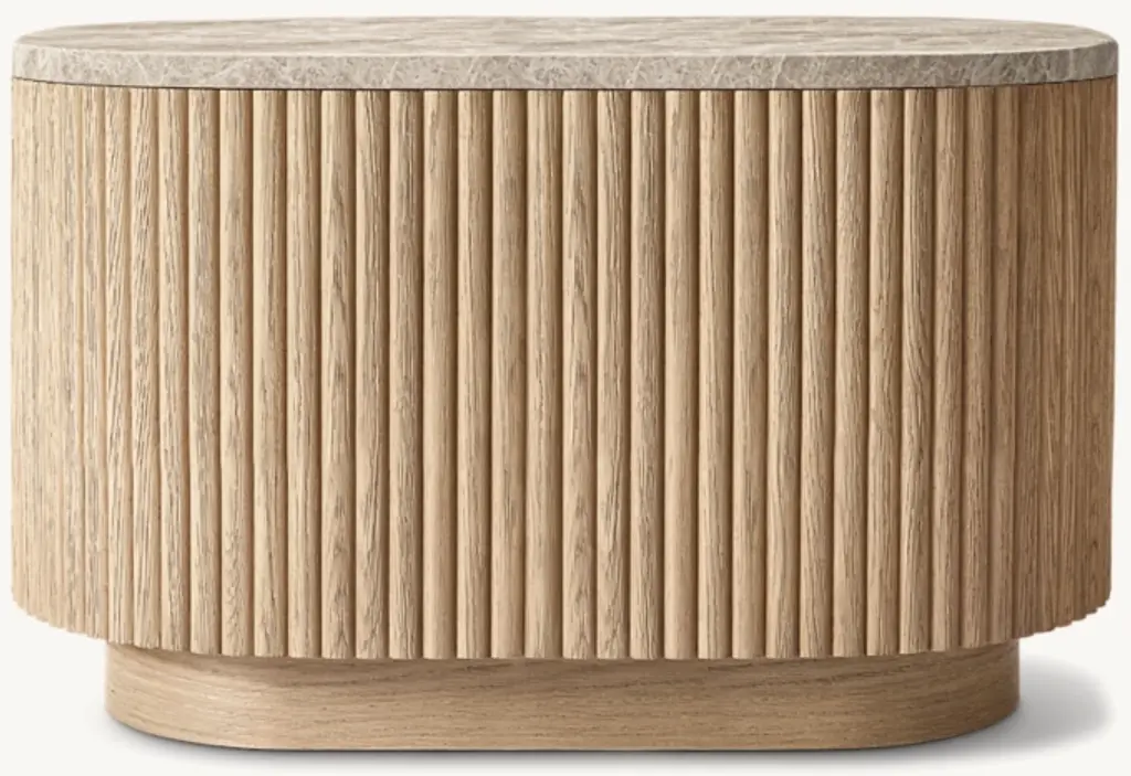 Defined by individually applied reeds of wire-brushed solid American white oak, Mulholland is the creation of celebrated design team Thomas Bina and Ronald Sasson. The collection features radius corners that curve around the side for an uninterrupted, fluid silhouette. Crafted of Emperador marble, the top is replete with rich veining and striking color contrasts that make each piece unique. SHOP THE ENTIRE COLLECTIONEXPLORE ALL REEDED COLLECTIONS