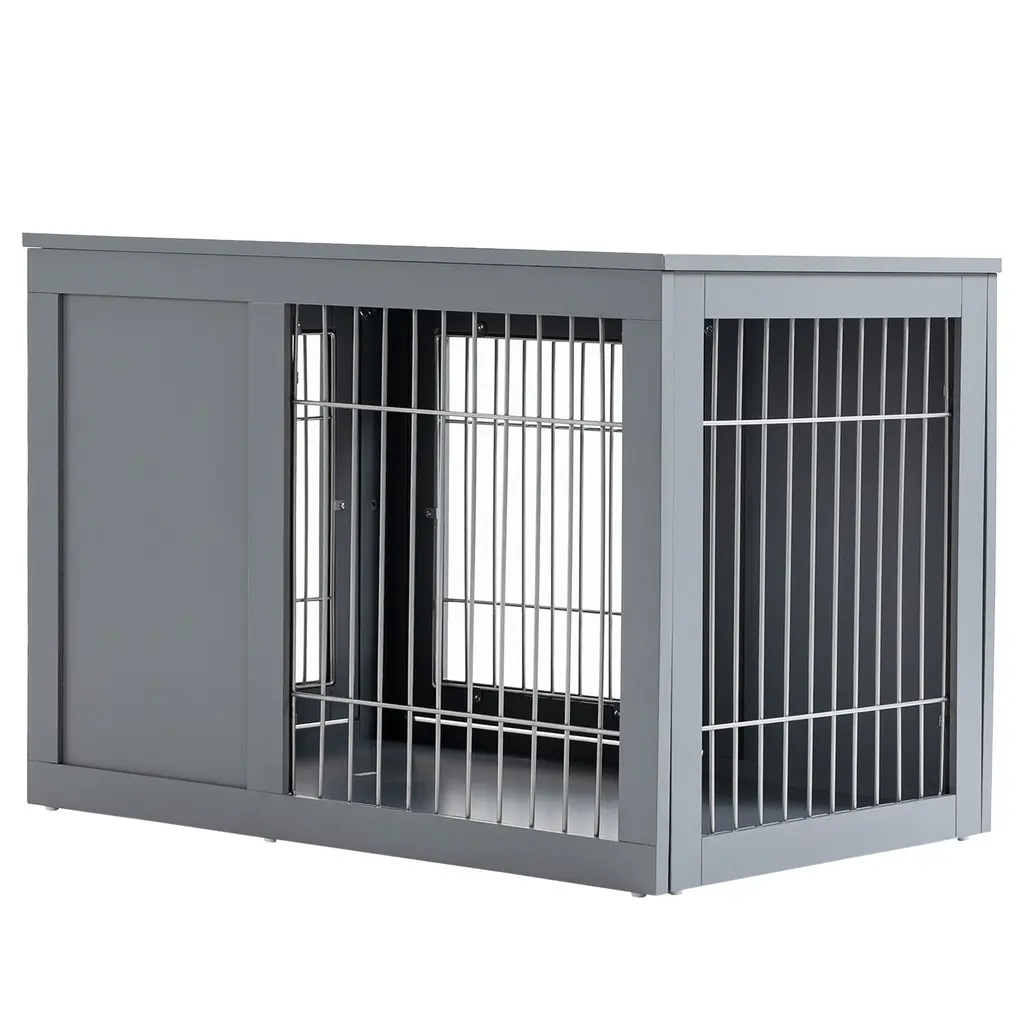 Multifunctional Dog Crate Furniture With Locking Double Doors, Indoor Pet Cage And End Table For Small To Medium Dogs - Grey - Medium