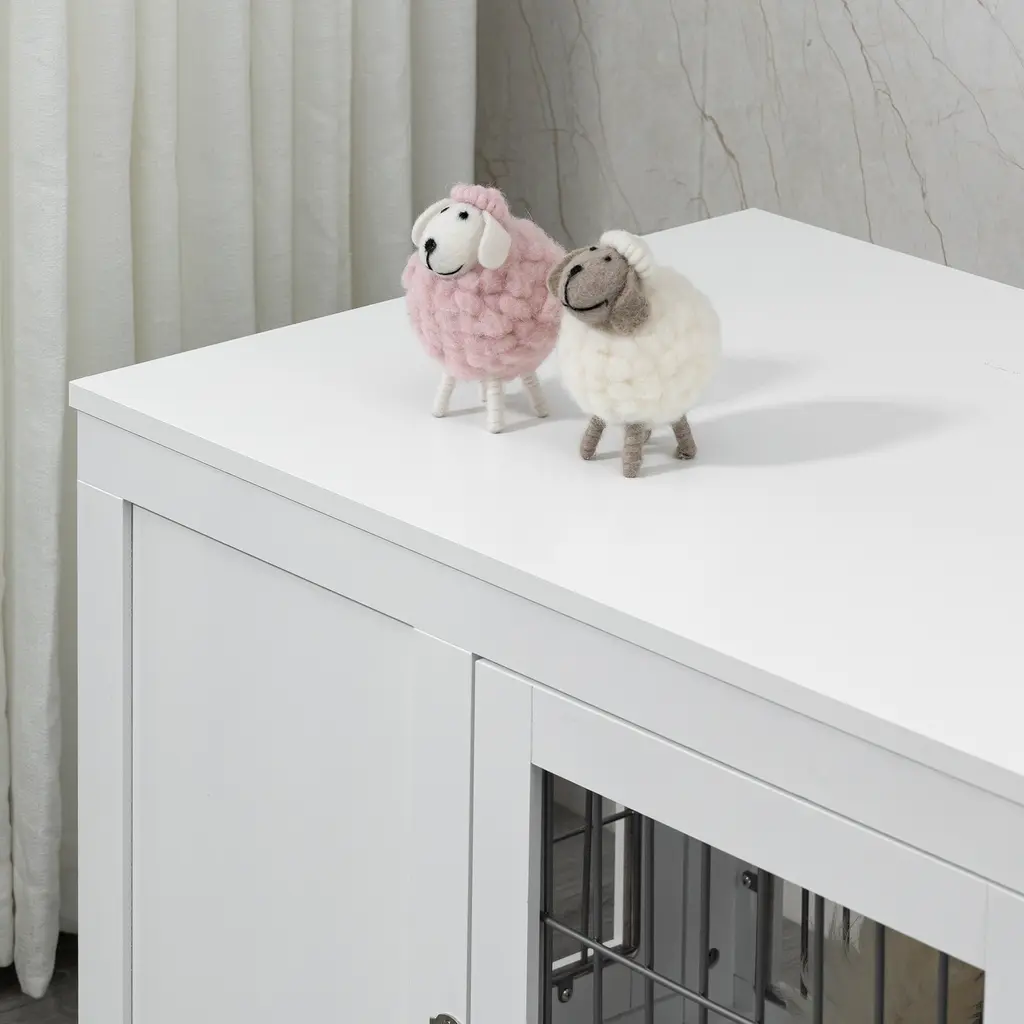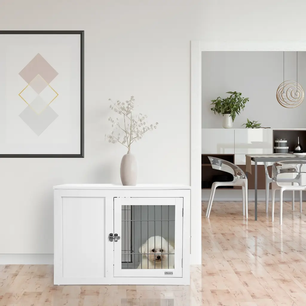 Multifunctional Dog Crate Furniture With Locking Double Doors, Indoor Pet Cage And End Table For Small To Medium Dogs - White - Medium