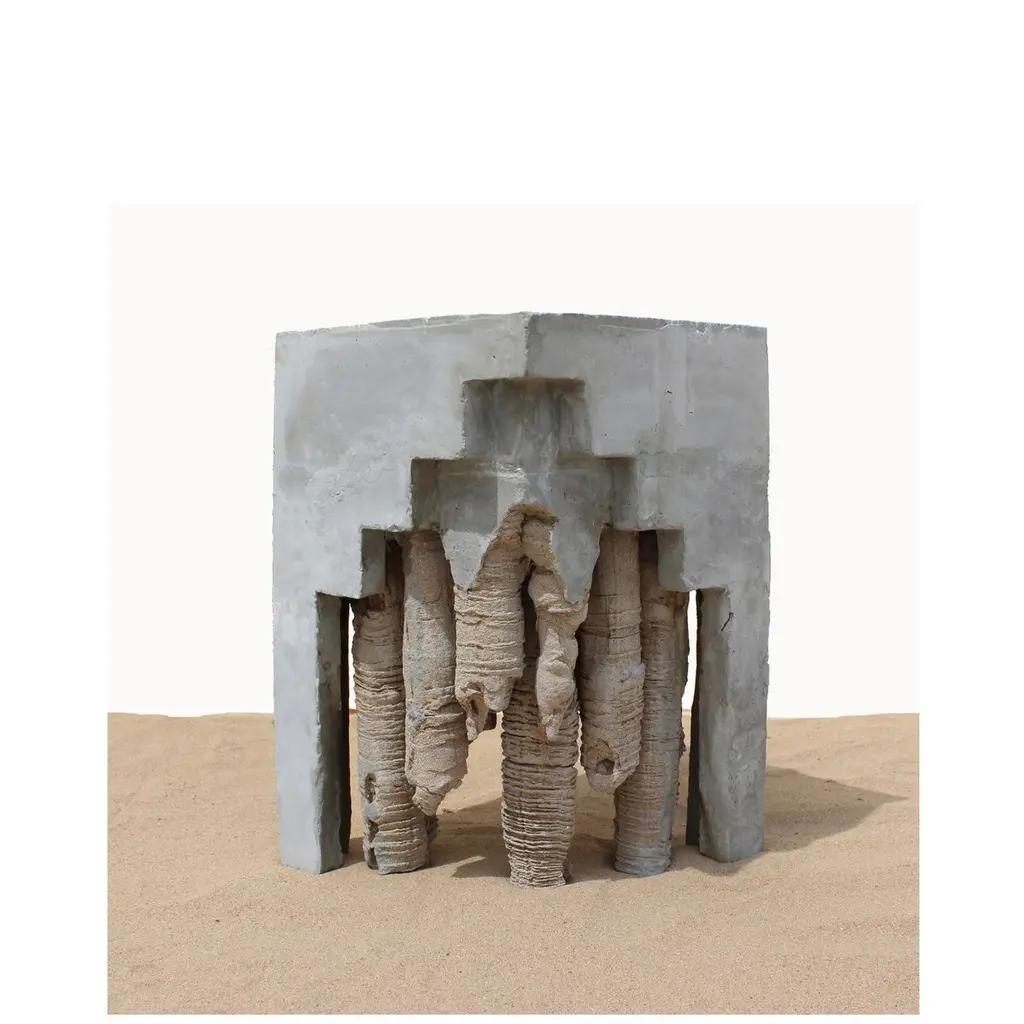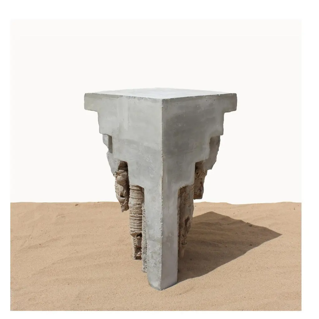 Geomorphic vase by Christian ZahrDimensions: W 25 x D 25 x H 50 cmMaterials: Cement- Sand- Water- Time.Each piece is handmade.The “Muqarnas” side table, as it’s name indicates, replicates the muqarnas, a powerful sculptural element in Islamic architecture, usually based on geometric abstraction and repetition in order to reach an organic aspect, and could seemingly be the result of natural forces. It’s organic structure is reminiscent of stalactite-covered ceilings of caves. When the original inspiration becomes reality, this fictional object seems to be in search of its place in time.Geomorphic Archeology: Unearthing the Ephemeral - Indoor primitive landscapes (furniture and objects). Sand carted. these concrete objects, an agglomeration of unpredictable and predesigned forms archetypal and fictional, archeological and geological, capture the complex and transformative times of the current turmoil. They are the outcome of an exploration of nature's microcosm and macrocosm during the Covid-19 lockdown. Taking advantage of the time slowed down handmade and made by nature (drops of water); they celebrate uniqueness in response to mass production, intimacy in our relation to our in-tenors and objects. Independence from the chain production suspended by the pandemic. Christian Zahr studied architecture at the Academie Libanaise des Beaux Arts, Beirut, Lebanon. After graduating in 2003, he interned at Ateliers Jean Nouvel Paris (2004) before going back to Beirut and working for renowned Lebanese architectural firms. In 2012 he founded Studio Christian Zahr, where he develops his practice as an independent architect, landscape designer, object designer and artist. Moving between these scales allows him to blur the boundaries between these different realms with the obsession to create a new language. Zahr’s work as a designer was showcased in several exhibitions such as Post-it in La Galerie de L’Architecture - Paris (2004), Beirut Design Week in Beyt Beirut Museum (2018), 1000 Vases in Dubai Design District (2019).