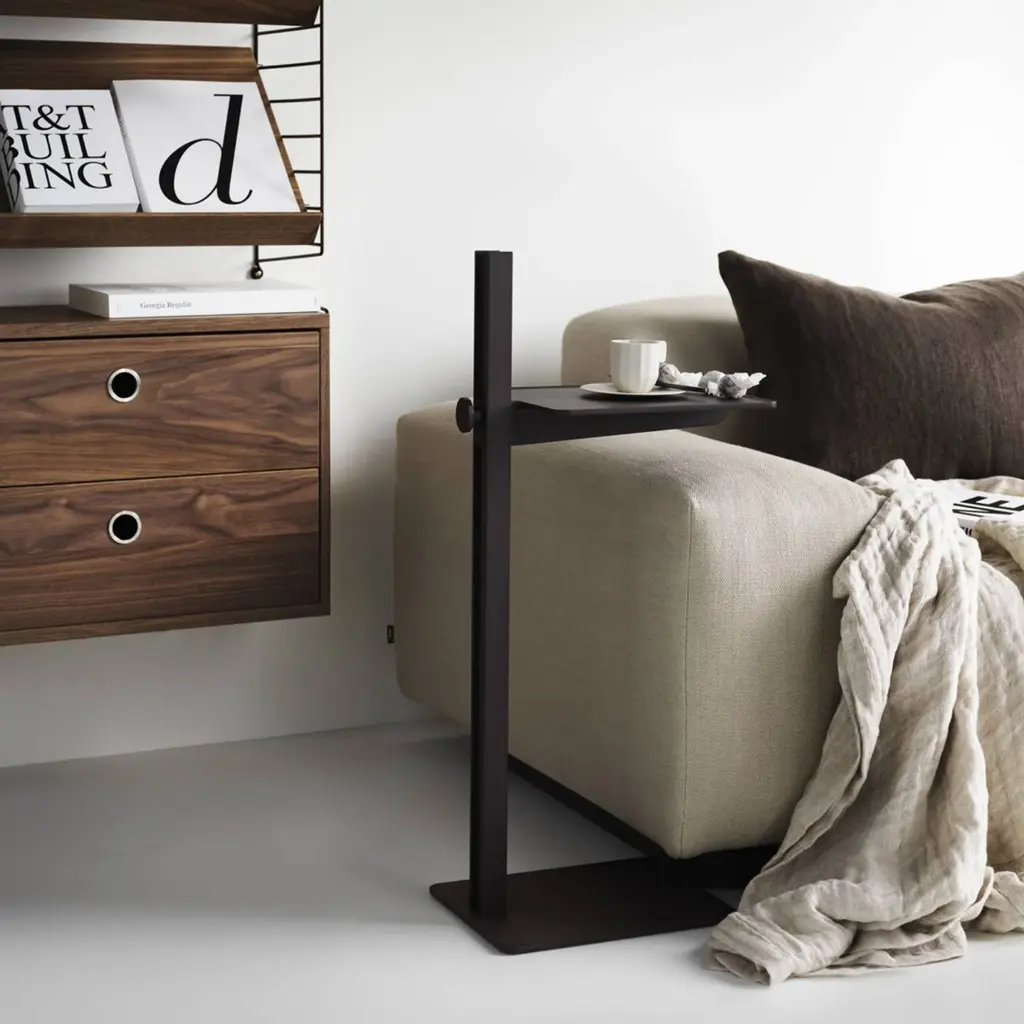 Slender but oh-so-robust, String’s height-adjustable metal Sidetable was originally designed by architect studio TAF for the Swedish National Museum. Picture it now as a small extra perch for drinks by the sofa, a bedside table, a computer work stand or an extra surface next to a desk—to hint at just some of the possibilities. Fashioned in powder-coated steel and aluminum, it comes in a range of smart neutral shades or high-voltage orange.