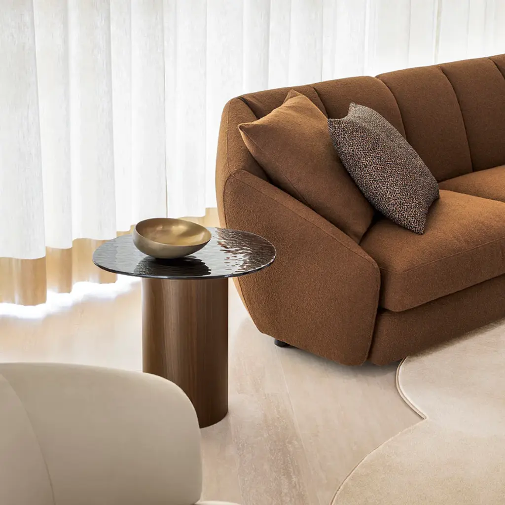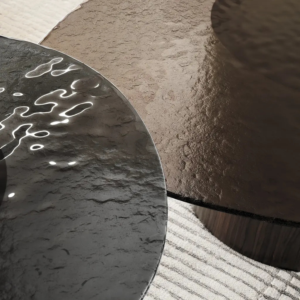 Indulge in the luxurious refinement of the Mushroom Side Table from Calligaris. Crafted with exquisite materials and organic shapes, its bush-hammered glass top evokes the vibrancy of glass-paste gems. The sleek and slightly askew wooden base gives the impression of a floating top, making it an unobtrusive yet functional addition to any living area. Highlights