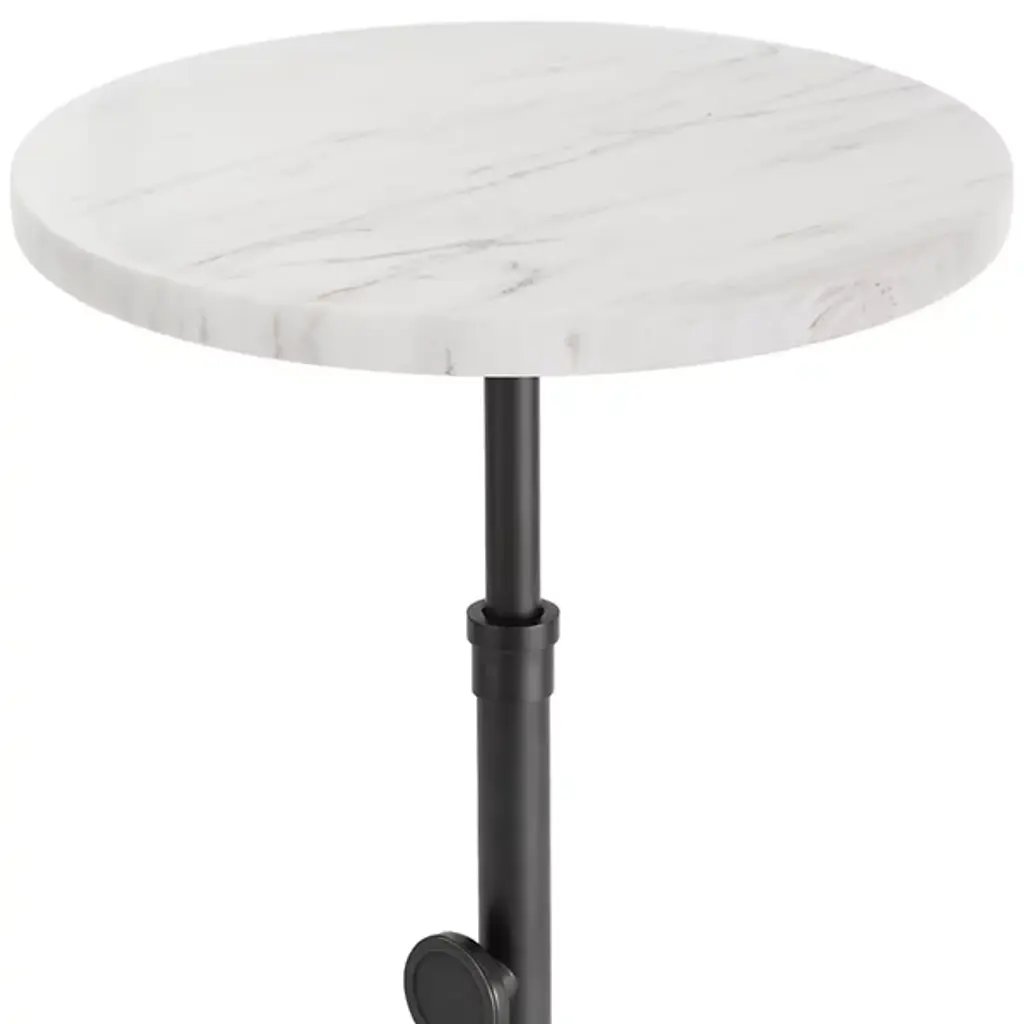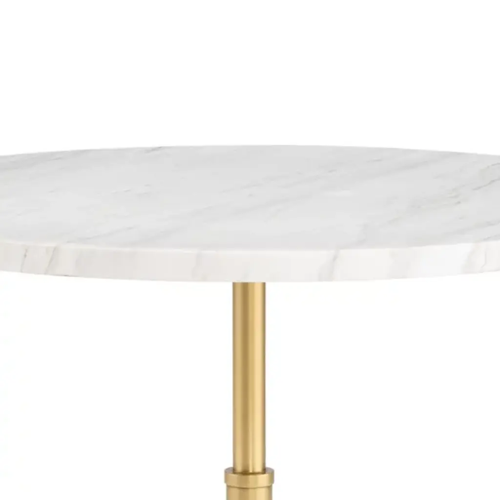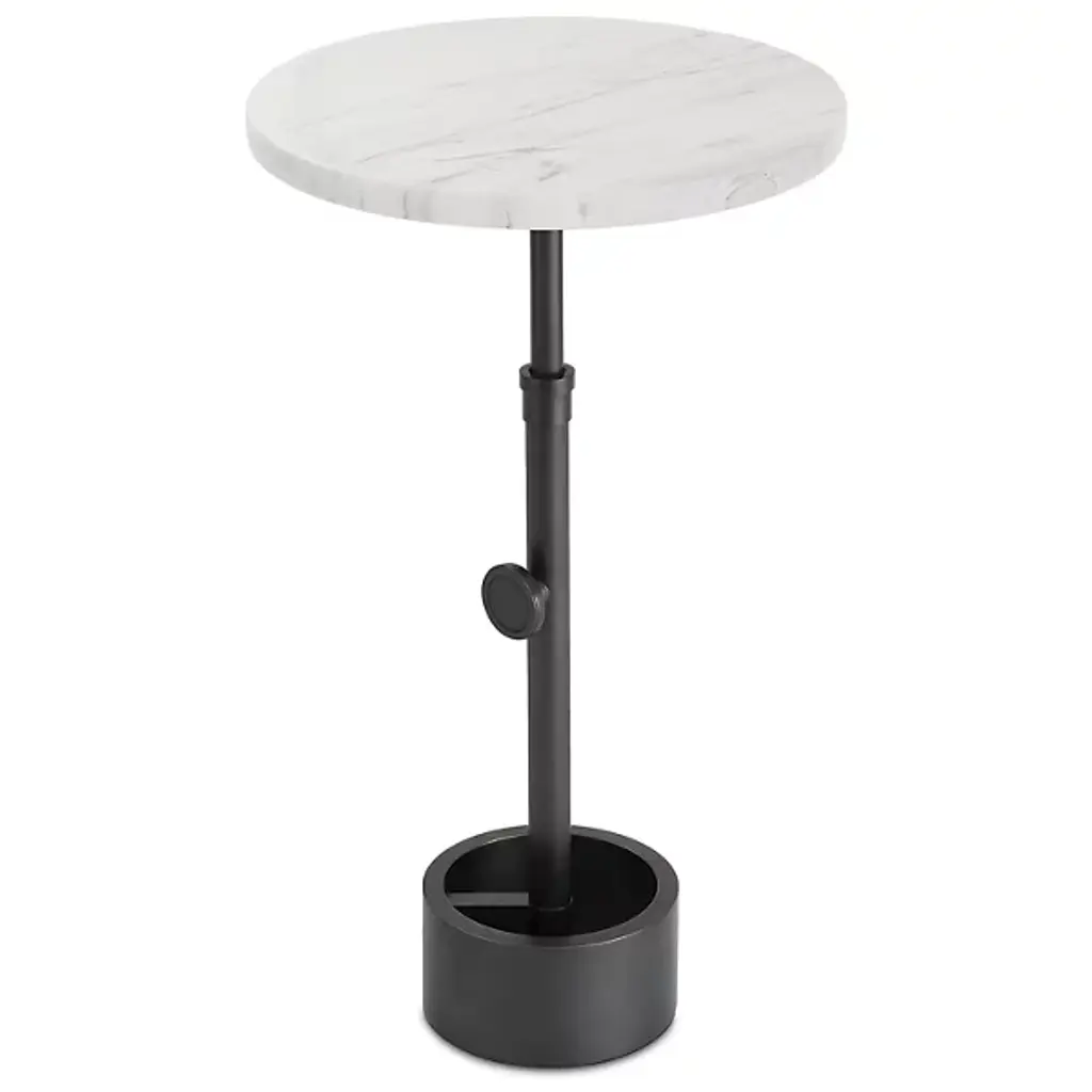 The Myles Accent Table from Regina Andrew pairs a circular marble top with an adjustable-height steel base that recalls vintage drafting equipment. The height mechanism allows you to customize the table for different uses, from laptop work to casual dining. It has a marble surface that provides a cool, smooth workspace and a steel pedestal base that takes up minimal floor space. The industrial-inspired base contrasts with the stone top, creating an interesting mix of materials and textures. This table adapts to your changing needs throughout the day, serving as both a work surface and an accent piece in your living space.