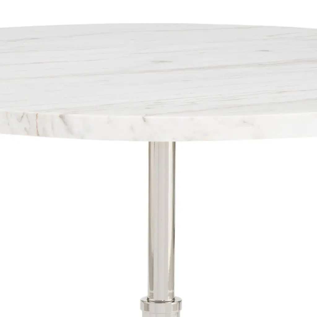 Elevate your decor with the Myles Accent Table Large. Featuring a substantial marble tabletop, this table's sturdy metal base highlights its sleek, sculptural design, offering timeless, industrial charm. The robust construction pairs beautifully with the marble's natural veining, making the Myles Accent Table Large a perfect addition to any living room, bedroom, or dining space seeking classic sophistication and enduring style.