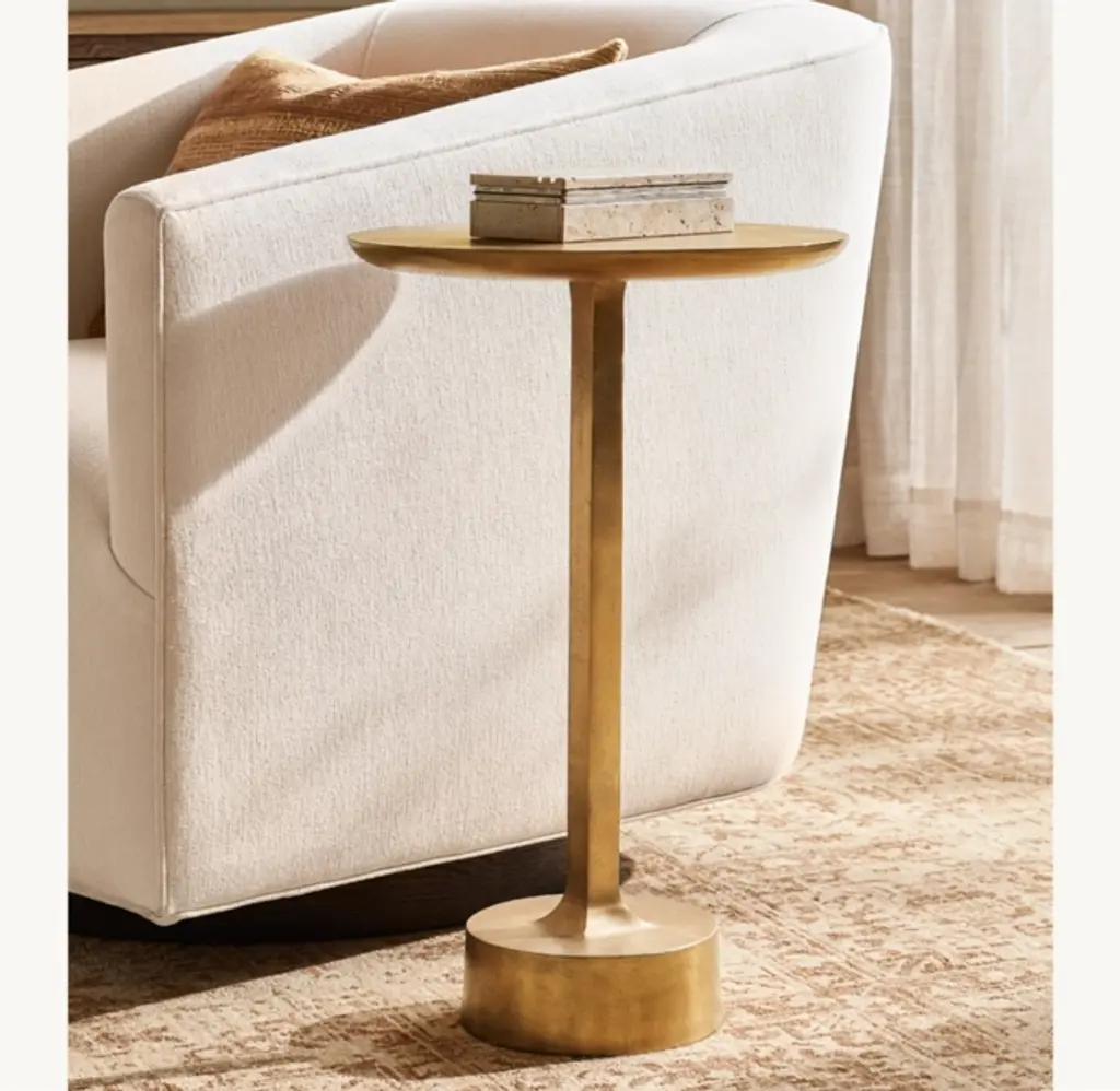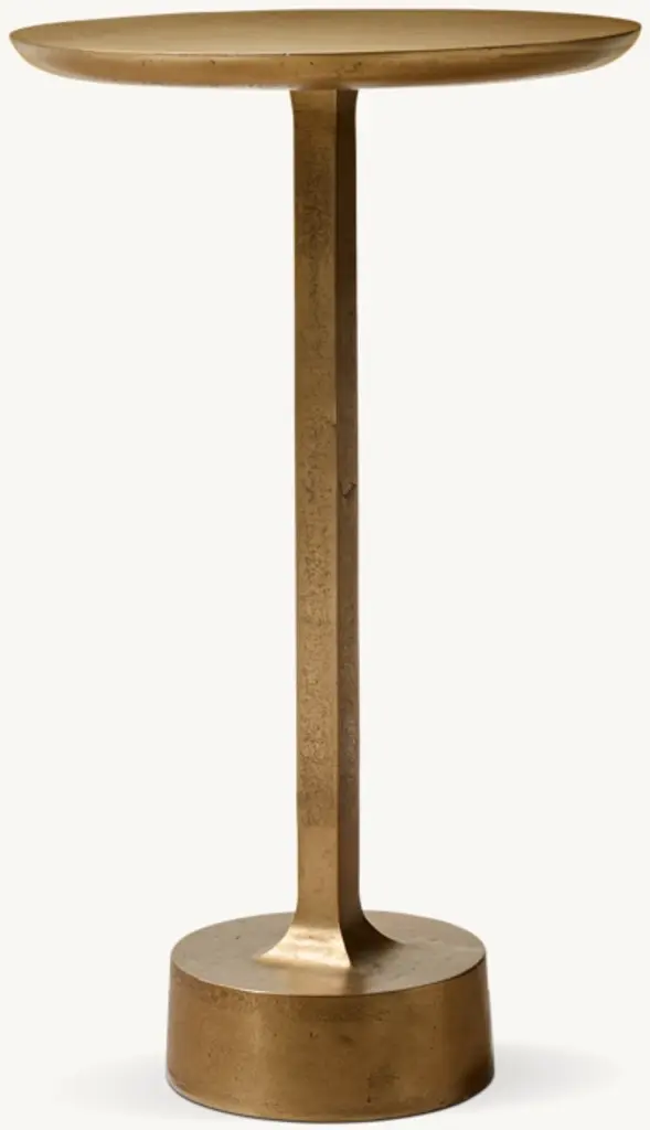 Myra's distilled design recalls the spare geometric forms that defined midcentury modernism. Perched on a round pedestal base, the rectangular stem rises to meet a circular top, its contoured edges playing counterpoint to crisp lines.