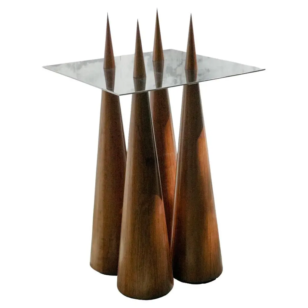 Na Pali means “the cliffs” and is a breathtaking landscape located on Kauai, a volcanic island resulting from the rain and the blasts of winter waves against the cliffs.Inspired by Mother Nature, the Na Pali tables portray in detail the mystique of this dramatic backdrop with striated walls and sharp ridges. The tables recreate the image of the needle shaped mountain slope as a highlight detail of the landscape.Produced with a combination of sculpted wood, glass and brass details, both three sizes of the Na Pali tables are statement pieces designed for modernist residential interiors and luxury hotels.Product details:Top: GlassBase: Wood structure finished in walnut veneer in half gloss varnish.Rings: Oxidized brushed brass.Product options:Top: Bronze glassBase: Other veneers, natural, aged or degrade gold/silver/copper leaf or any Ral Classic color finished in matt, half gloss or high gloss varnish.Rings: Polished, aged brushed or oxidized brushed brass/copper/ steel.Weight: 5Kg 11.1 lbsMade to order. Custom sizes and other finishes are available under request.Designed by Joana Santos Barbosa for InsidherLand, 2014. Handmade in Portugal.
