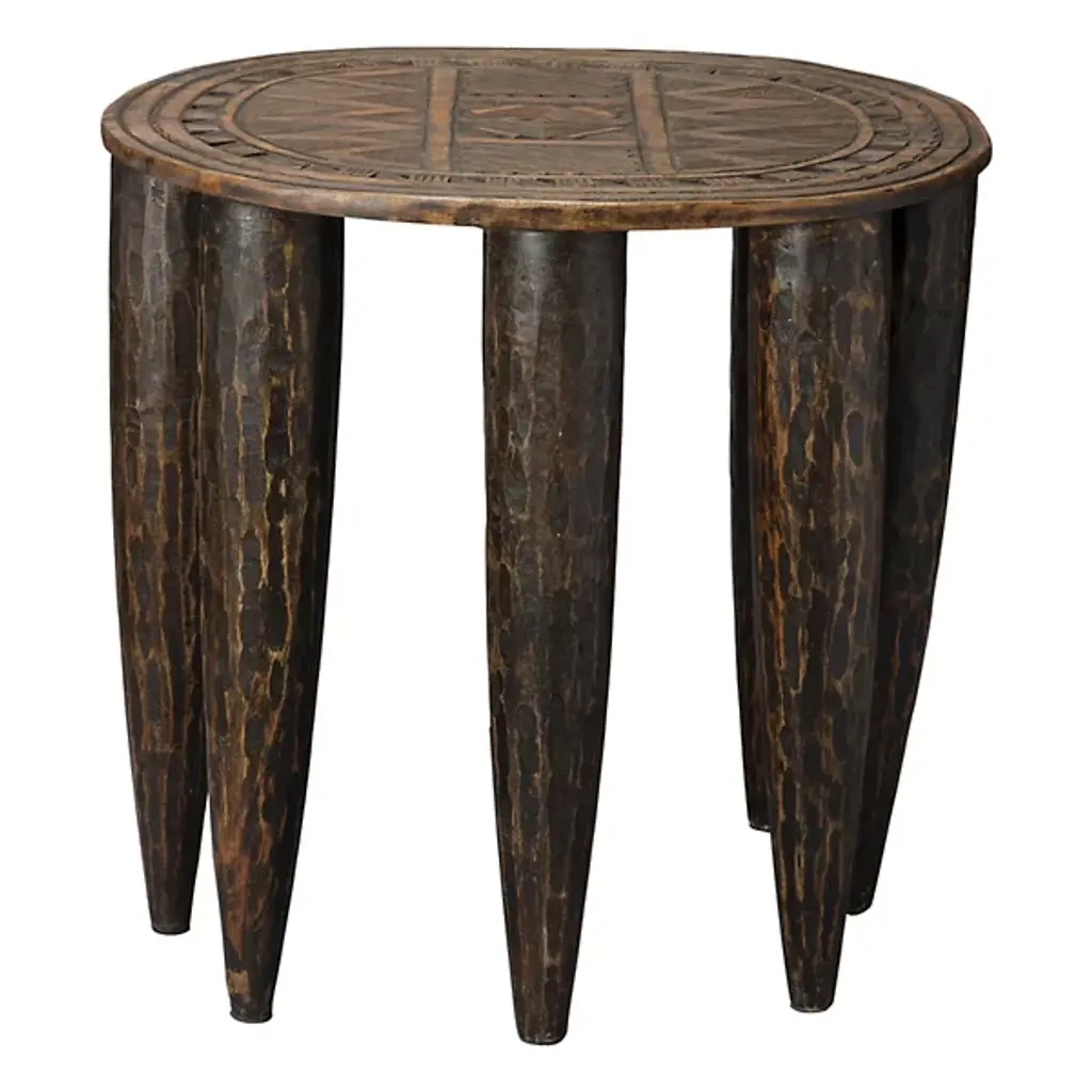 The Naga Side Table from Jamie Young Co. celebrates India's cultural craftsmanship in stunning fashion. Each piece is hand-carved from sustainable mango wood by Naga artisans, incorporating traditional motifs into the surface patterns. Eight tapered legs support the intricately detailed top, creating a distinctive presence, while the wood’s inherent characteristics - knots, grain patterns, subtle marks - make each table unique. This accent piece brings cultural authenticity to living spaces, whether placed beside a reading chair or beneath a window.