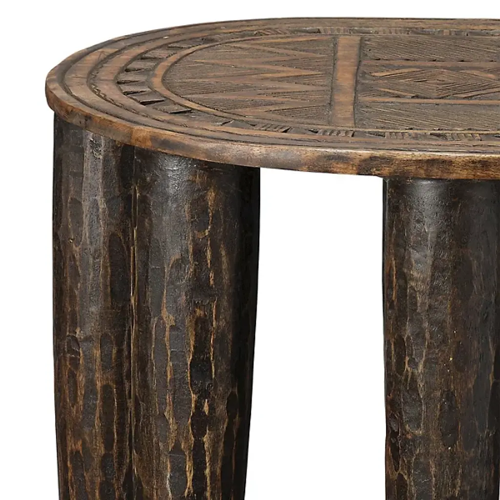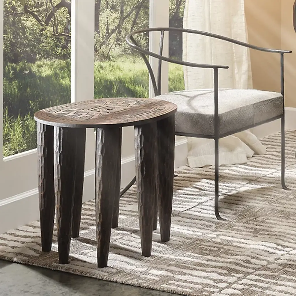 The Naga Side Table from Jamie Young Co. celebrates India's cultural craftsmanship in stunning fashion. Each piece is hand-carved from sustainable mango wood by Naga artisans, incorporating traditional motifs into the surface patterns. Eight tapered legs support the intricately detailed top, creating a distinctive presence, while the wood’s inherent characteristics - knots, grain patterns, subtle marks - make each table unique. This accent piece brings cultural authenticity to living spaces, whether placed beside a reading chair or beneath a window.