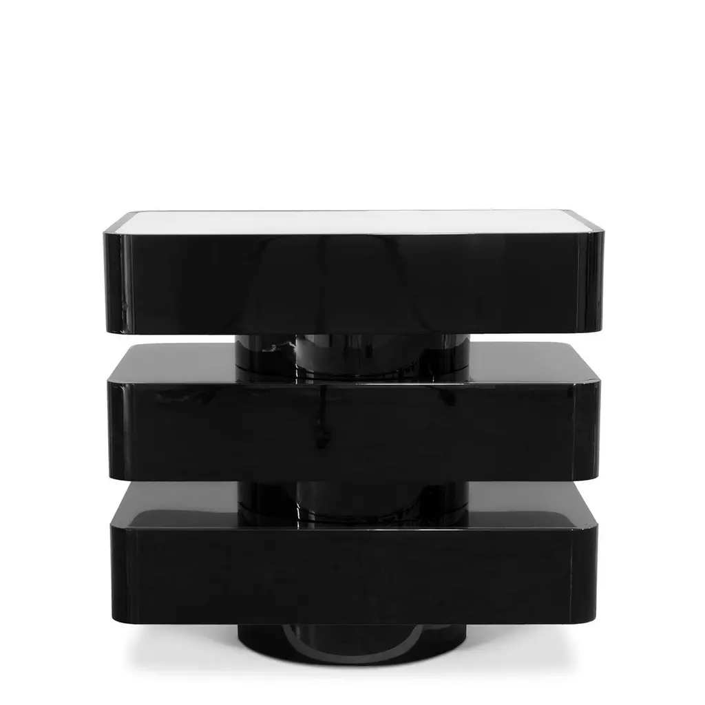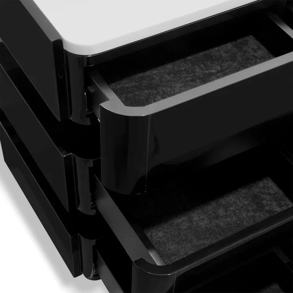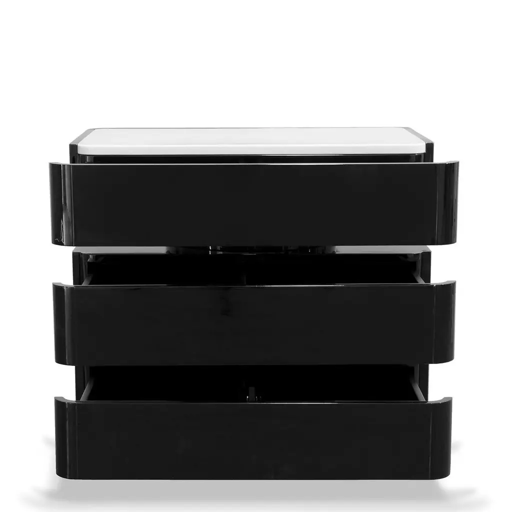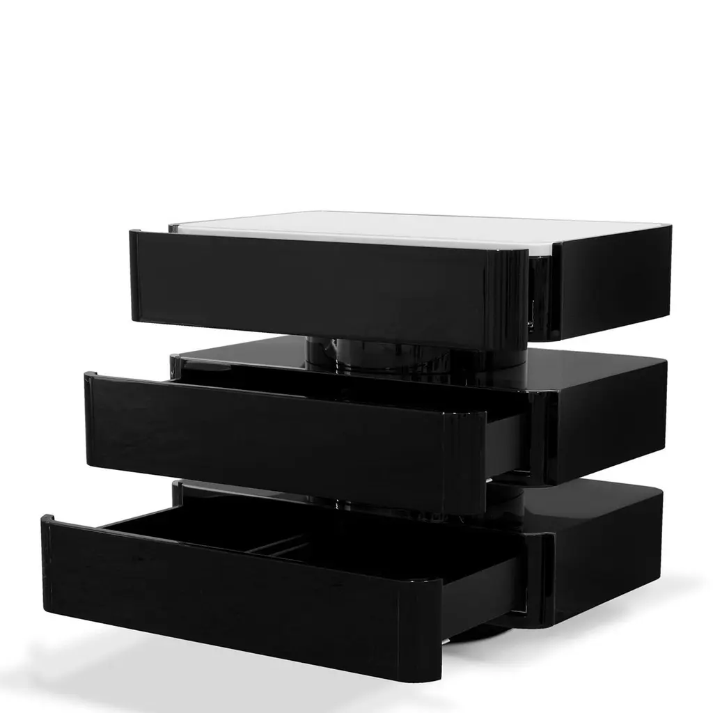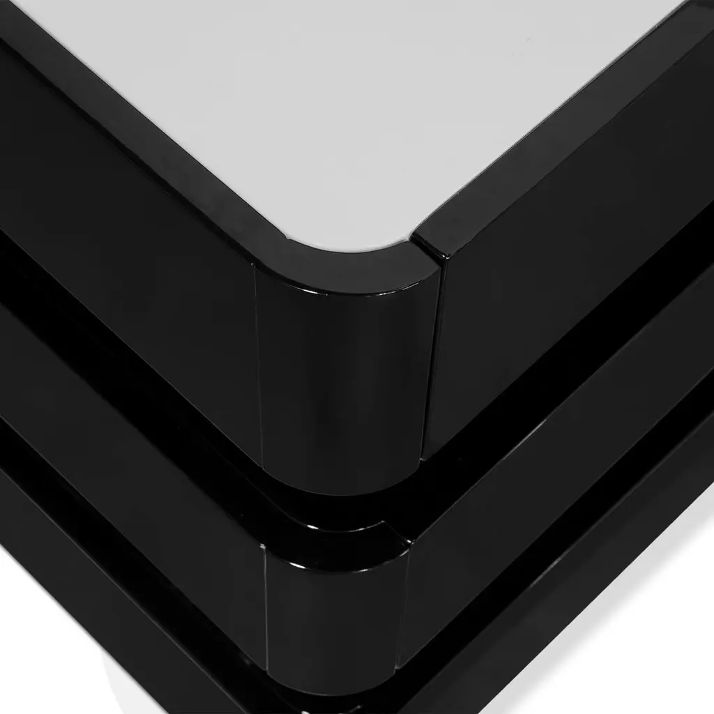 Nagoya Side Table with structure in solid ash wood,with ash veneered top with white transparent paint andbody in ash wood in black lacquered finish. Including 3drawers, with easy glide system.