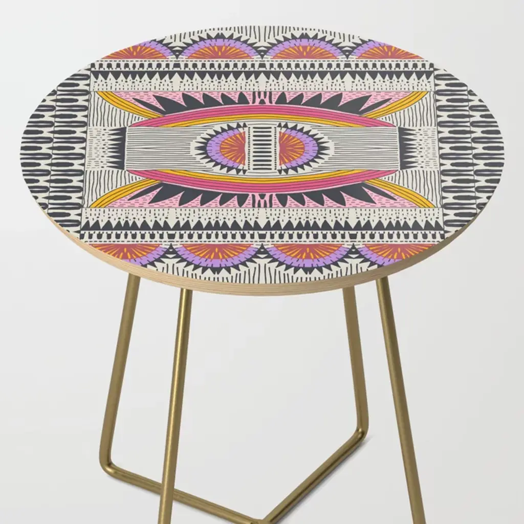 From sideshow to show-stopper, our side tables will be a stunning modern accent to your space. Selecting from our wide array of artist's designs printed with a satin finish on birch wood, you’ll take any room from zero to a hundred. Available in a square or round table top, and black or gold leg colors.Square: 19" x 19" x 19" (H)Round: 19" (diameter) x 19" (H)Baltic birch table top with beveled edgeHigh quality print with satin finishSteel legs available in black or goldAssembly requiredFor more info click here.SHIPPING: Items are made to order and typically ship within 3-4 business days. Click here for more information about delivery options.Furniture sales are final. Click here for more information on returns.