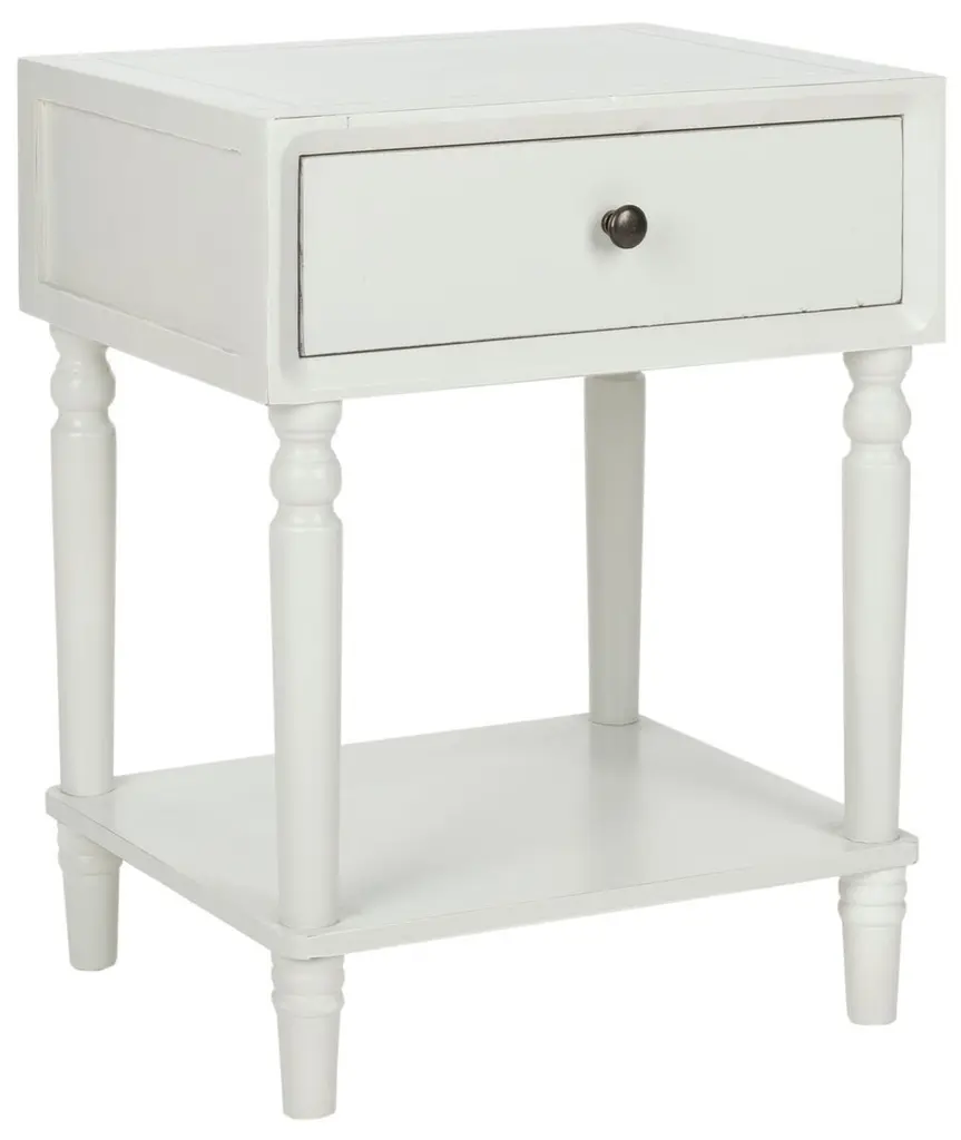 Create charming sophistication in your home with our Nantucket end table. This piece is crafted from hardwood solids and white oak veneers and features a white and driftwood two-tone finish. Antique pewter finished hardware completes the look. This piece is perfect when placed on either end of your sofa where its detail can be admired.