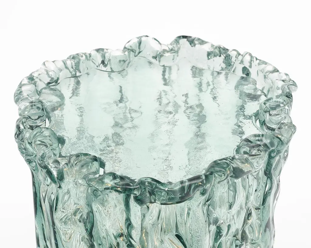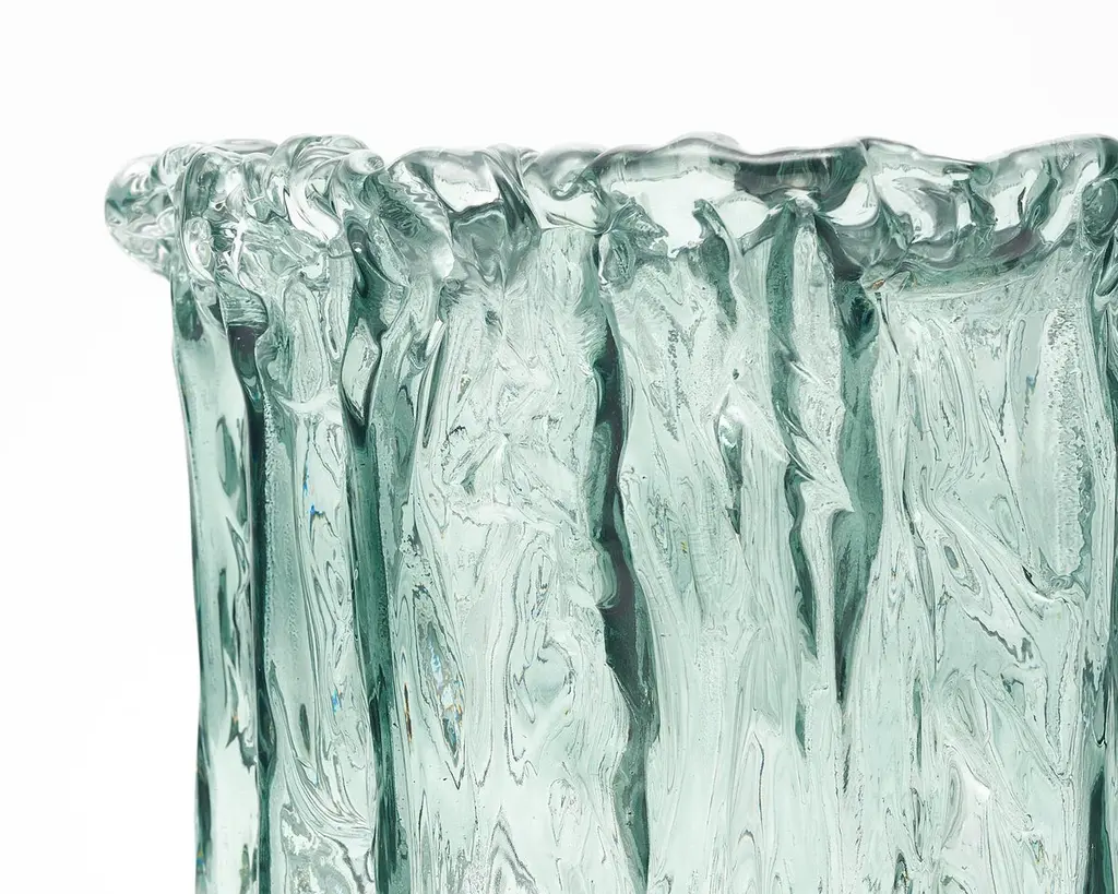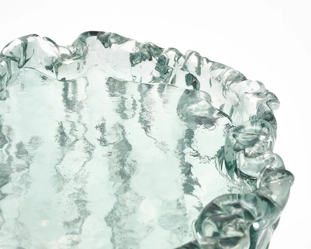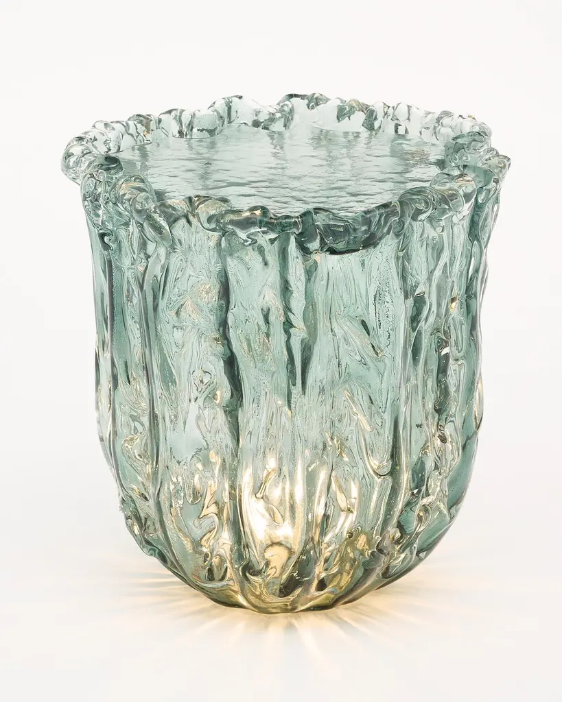 Pair of Naoto Fukasawa glass side tables created in Murano, Italy. The tables are hand-blown with an organic shape. A separate glass cover fits perfectly into the top. They are electrified within to create a beautiful glow as the light passes through the blue glass. They have been newly wired to fit US standards.This pair is a special order from Italy. Please contact us for a lead time.