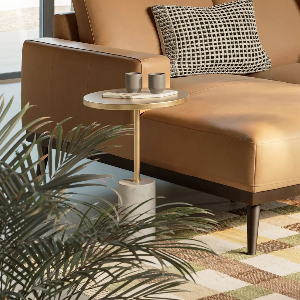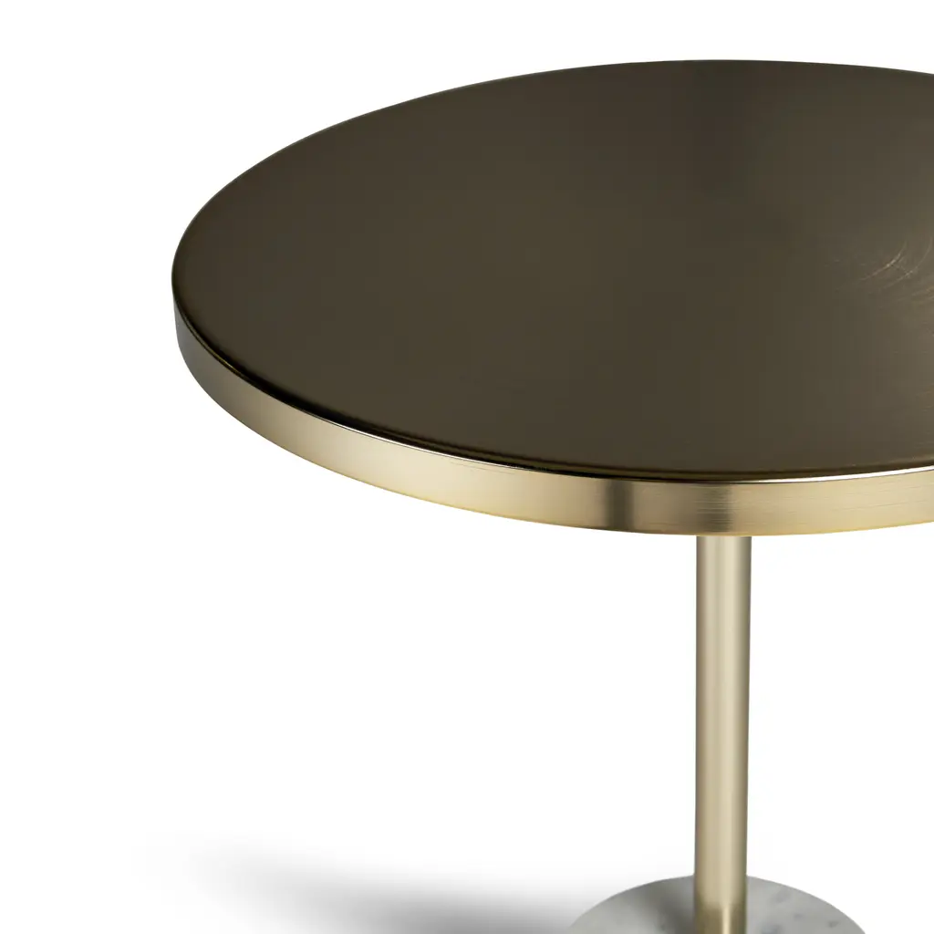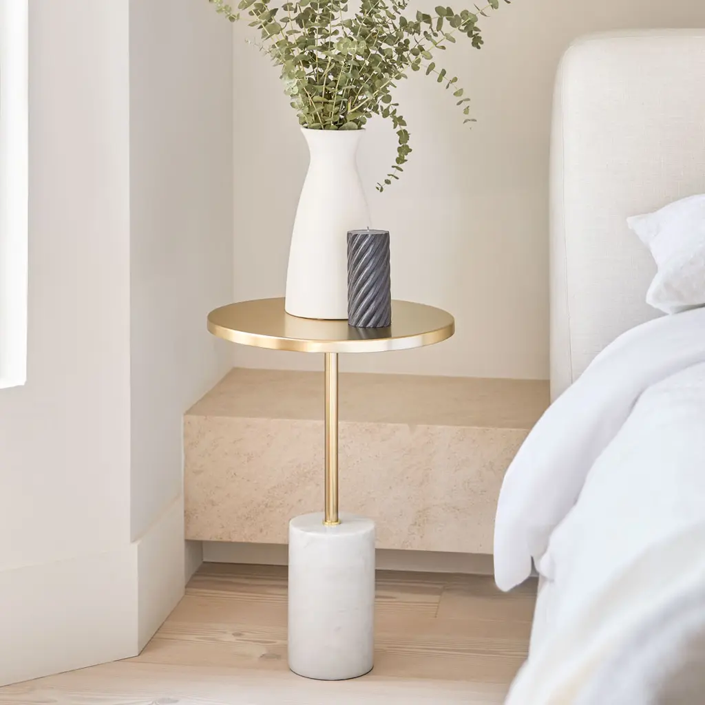 A brass act. The Narro table’s metal top dons an eye-catching brass finish that will add a pop of glam to your space. Ever finished off your look with a statement necklace or chunky polished watch? It’s like that. As a place to put your cup of Irish coffee while you lounge on your sofa, or a resting spot for your dog-eared novel next to your bed, the marble base makes sure everything stays well-anchored.