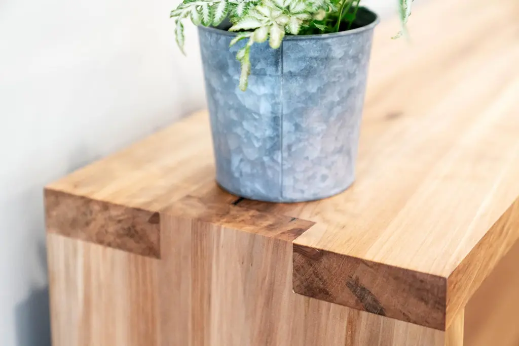 This Narrow "Satin Walnut" Console Table with Apron and Traditional Joinery is Rustic yet refined with seamless box joints. The Spider Console Table is hand crafted by Alabama Sawyer from Alabama urban sweet gum trees. Often referred to as "satin walnut", sweet gum wood has a natural luster and is heavy, making it an ideal source for beautiful, long lasting furniture. A paneled Apron is a brilliant addition to the console table adding concealment for plugs and cords. This table is made to order and can be custom sized for use in a foyer, hallway or as an end table. Alabama Sawyer welcomes a dialogue with its customers to fit this piece uniquely in a home or office setting. Features such as sap wood and pin knots vary from tree to tree and slab to slab adding to the unique character of each table.A field-to-studio company, Alabama Sawyer repurposes the finest wood species, reclaimed from our local urban forests, to create one of a kind furniture pieces and accessories for the home or business.