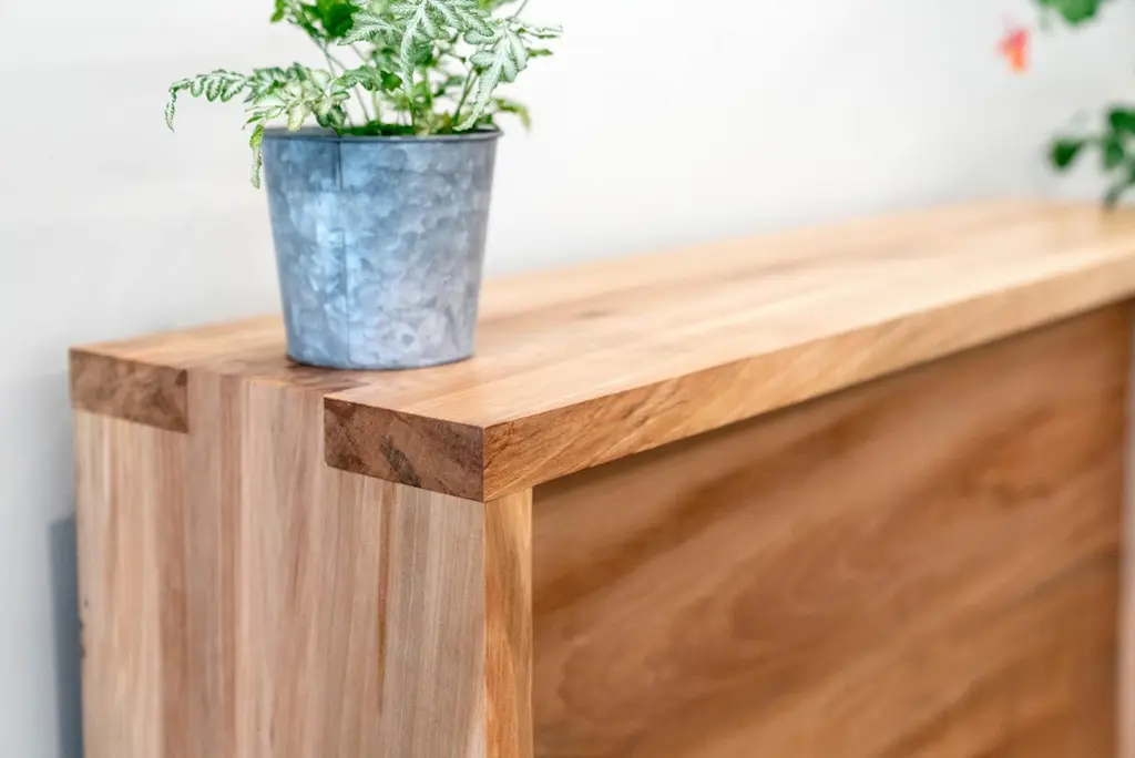 This narrow "Satin Walnut" console table with apron and traditional joinery is rustic yet refined with seamless box joints. The spider console table is handcrafted by Alabama Sawyer from Alabama urban sweet gum trees. Often referred to as "satin walnut", sweet gum wood has a natural luster and is heavy, making it an ideal source for beautiful, long lasting furniture. A paneled apron is a brilliant addition to the living room console table adding concealment for plugs and cords. This table is made to order and can be custom sized for use in a foyer, hallway or as an end table. Alabama Sawyer welcomes a dialogue with its customers to fit this piece uniquely in a home or office setting. Features such as sap wood and pin knots vary from tree to tree and slab to slab adding to the unique character of each table.A field-to-studio company, Alabama Sawyer repurposes the finest wood species, reclaimed from our local urban forests, to create one of a kind furniture pieces and accessories for the home or business.