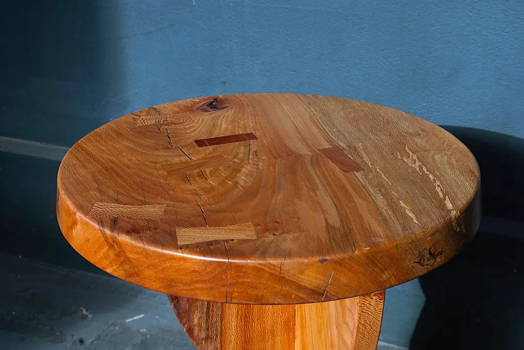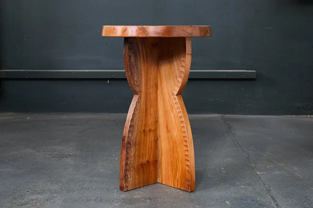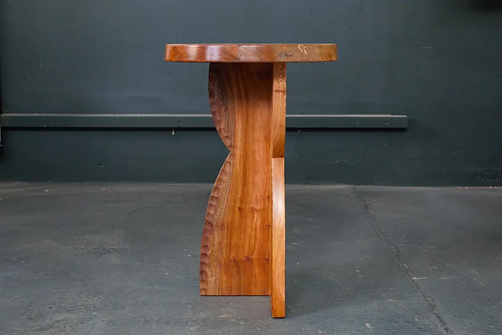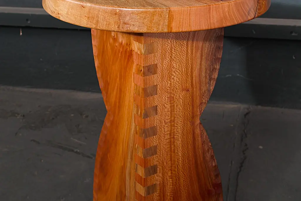 Based on a bedside table made for James’ partner Natalie, this side table displays the character of London Plane timber at its finest. The tabletop is embellished with through tenon joints, which connect the legs to the top. The legs are joined with chunky but precise box joints on the back edge, and a hand carved detail along the curved front edge. The warmth of this oiled plane timber looks gorgeous as a bedside table but works equally well in a lounge.Variations in the timber grain patterns to be expected in each piece. Diameter 400mm x H 600mm. Please get in touch for custom sizes, finishes and timber species.About the maker:Furniture designed and crafted by James Torble, Loose Fit Furniture, in East Sussex.James is a maker fascinated by his craft and the possibilities of what can be created in British wood. He designs and makes furniture to be fun to live with, while being sensitive to the demands of natural timberJust as every tree is different, each piece of wooden furniture will have subtle variations in the timber, with unique figuring and character.Adhering to the values of good craft means that each product is designed with low waste and is made to last a lifetime.Furniture is finished in natural oils, waxes and soap washes.Handmade to order. Made in James' workshop on the south coast of the UK.